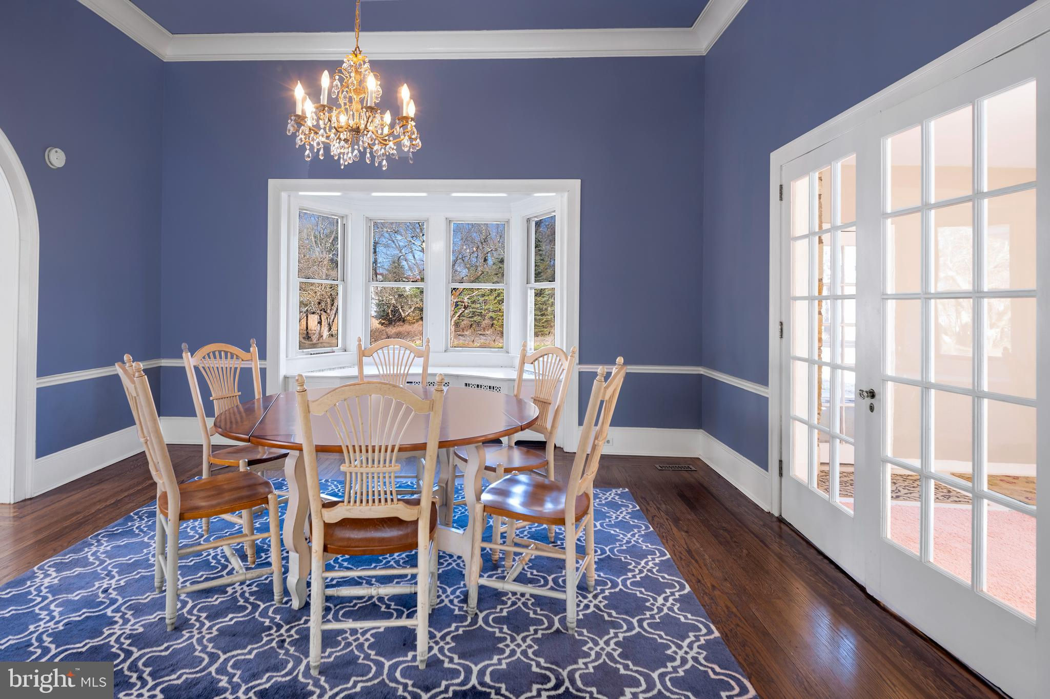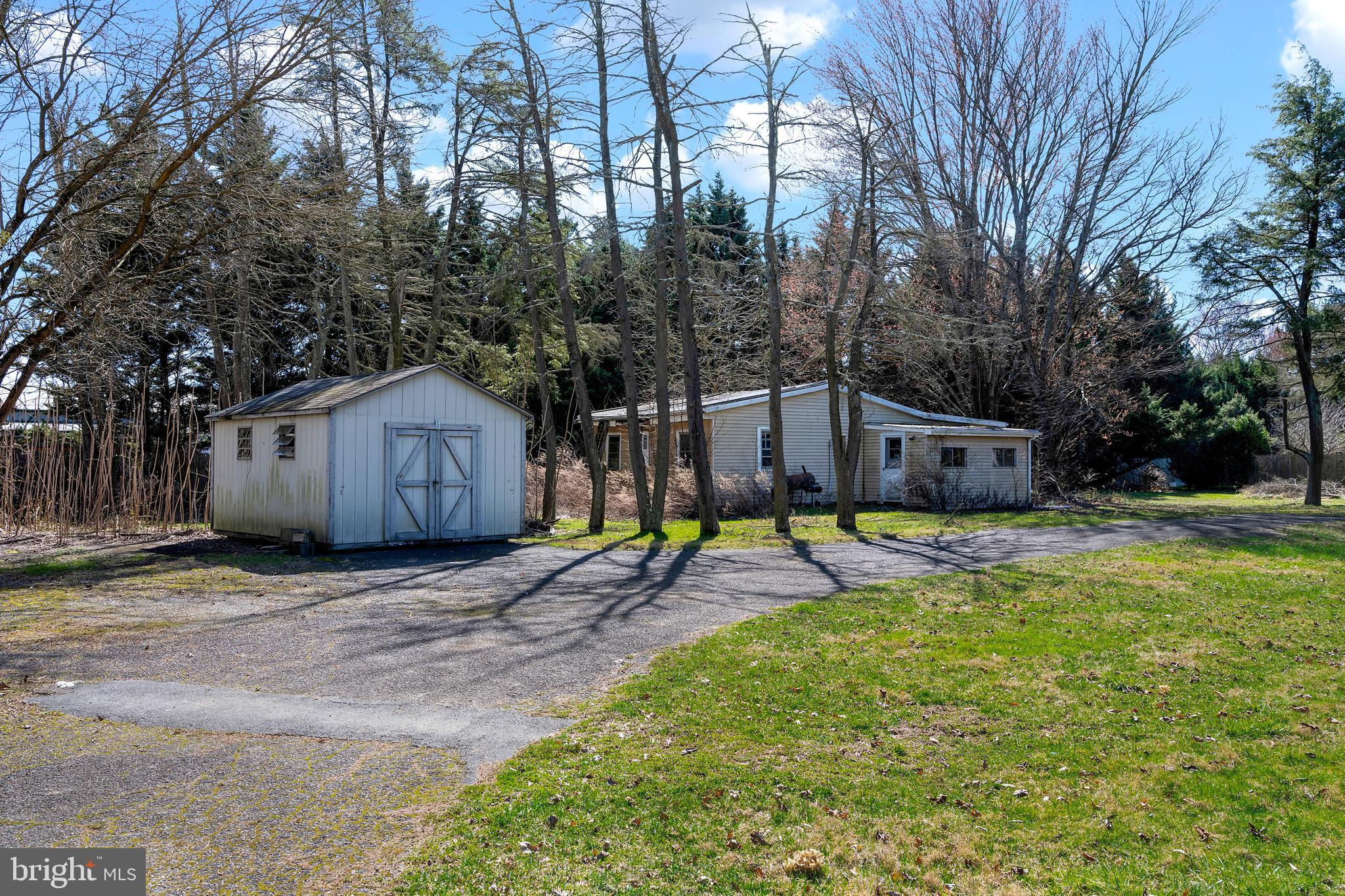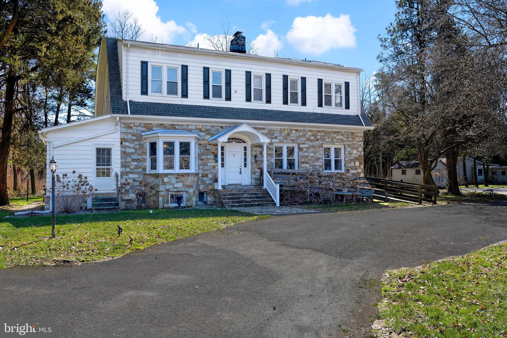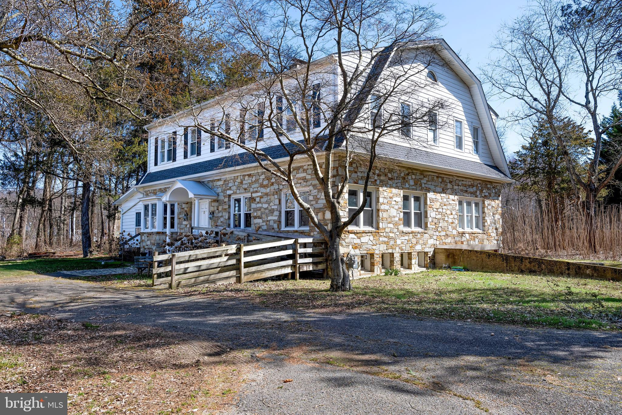 With flexible zoning and 7+ acres to work with, a world of possibilities exists at this very special Robbinsville property. The existing, magnificent 5400+ square foot Colonial home is completely set back from the road and immersed in trees for a totally private experience. Bear Brook runs along the edge of the property furthering the natural beauty. The house is extraordinary in both size and period charm. Ceilings rise to a height of over 12 feet and rooms are beyond expansive, especially the jaw-dropping living room through a graceful arched doorway. Large windows and ample natural light are unifying features throughout. For an ideal work-from-home experience, just step through French doors into the sunroom with its own private entrance. The kitchen is done in crisp, clean gray and white with a farmhouse sink and tall shaker-style cabinetry. Choose between two primary suites: one conveniently on the main floor or one upstairs with a fireplace, custom walk-in closets and a palatial bath with freestanding tub. Three more bedrooms, served by two baths, are also generously sized with still more upstairs space left over for a sitting area and a laundry room. A circular driveway provides plenty of guest parking and a secondary 900 square foot structure, sold as-is, stands just beyond a handy shed. Relish the secluded charm of this manor-style home and take advantage of the great Robbinsville school system or explore the possibilities for something totally different. Square footage per Robbinsville Twp tax assessor.