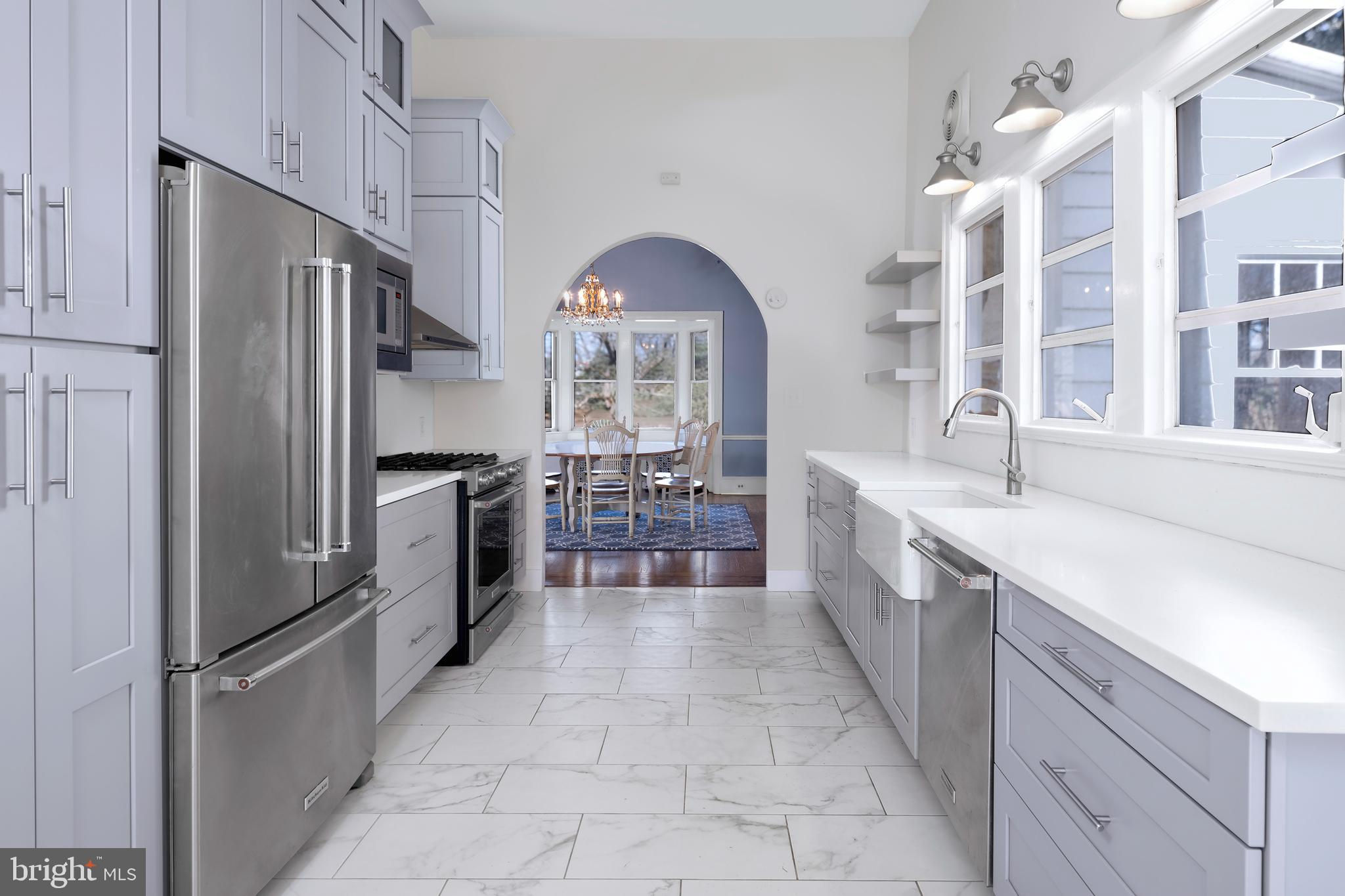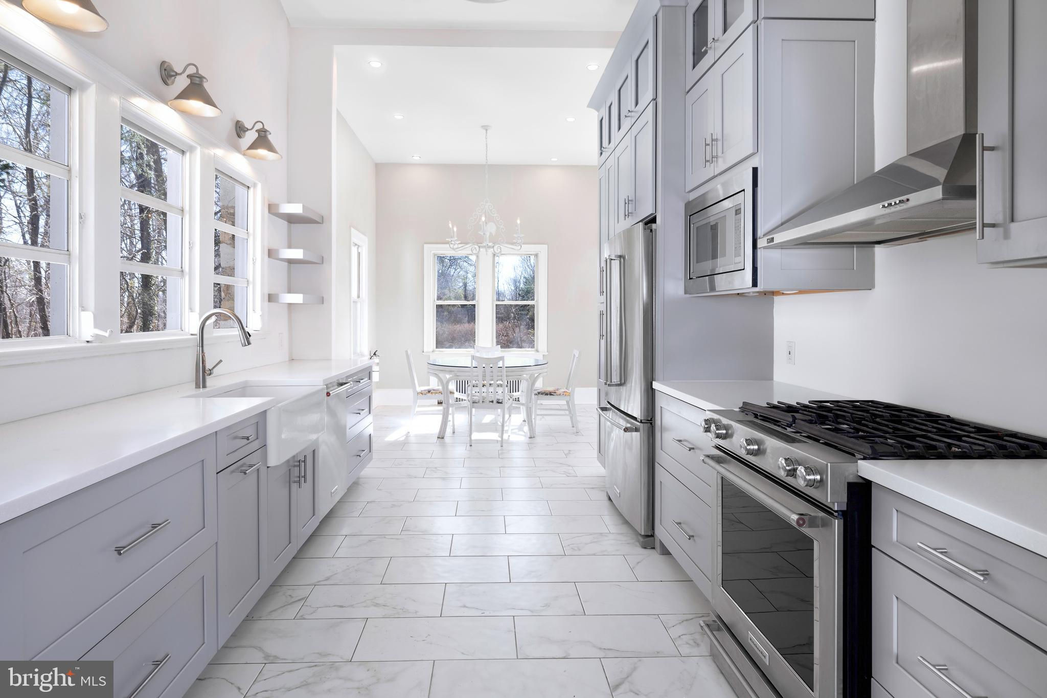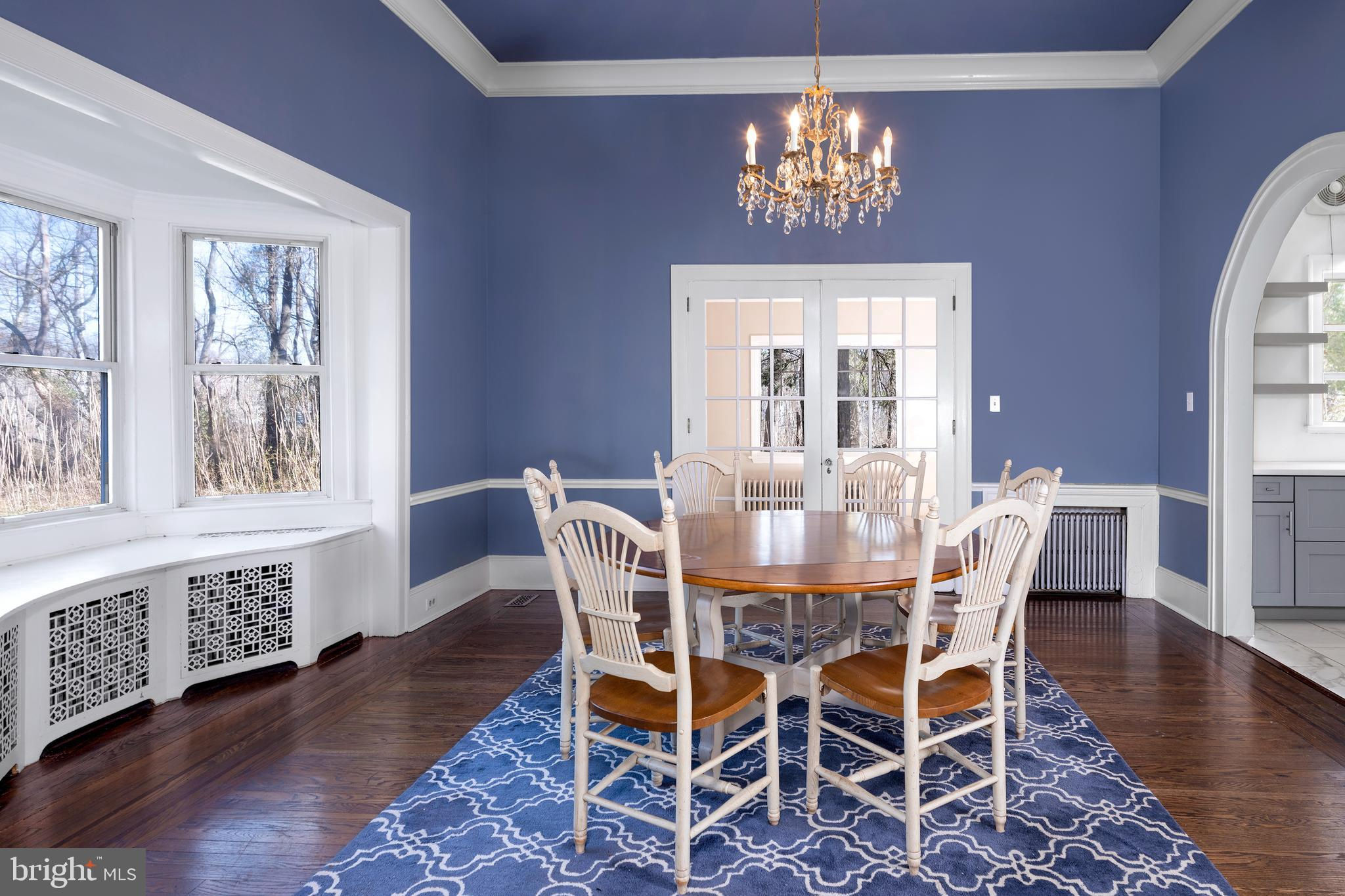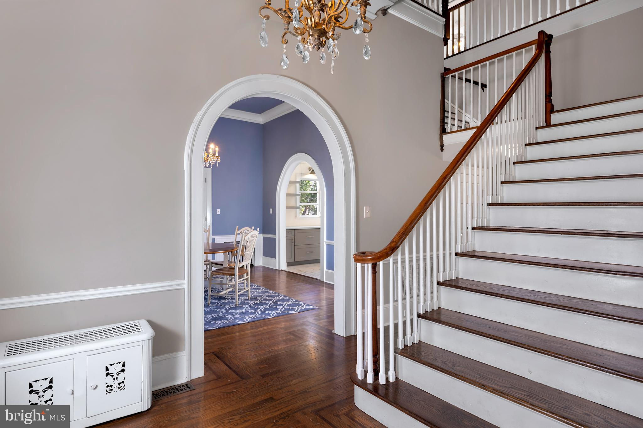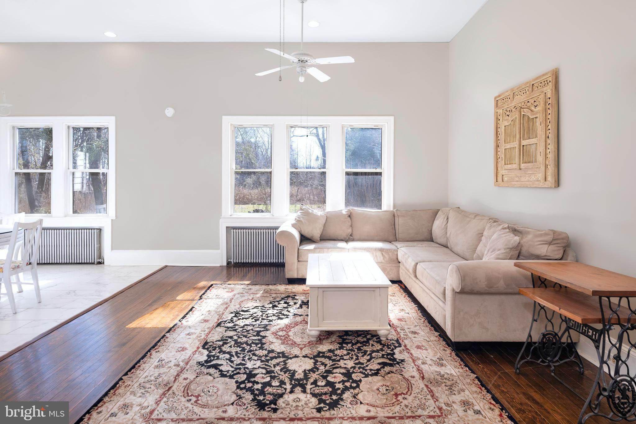 With flexible zoning and 7+ acres to work with, a world of possibilities exists at this very special Robbinsville property. The existing, magnificent 5400+ square foot Colonial home is completely set back from the road and immersed in trees for a totally private experience. Bear Brook runs along the edge of the property furthering the natural beauty. The house is extraordinary in both size and period charm. Ceilings rise to a height of over 12 feet and rooms are beyond expansive, especially the jaw-dropping living room through a graceful arched doorway. Large windows and ample natural light are unifying features throughout. For an ideal work-from-home experience, just step through French doors into the sunroom with its own private entrance. The kitchen is done in crisp, clean gray and white with a farmhouse sink and tall shaker-style cabinetry. Choose between two primary suites: one conveniently on the main floor or one upstairs with a fireplace, custom walk-in closets and a palatial bath with freestanding tub. Three more bedrooms, served by two baths, are also generously sized with still more upstairs space left over for a sitting area and a laundry room. A circular driveway provides plenty of guest parking and a secondary 900 square foot structure, sold as-is, stands just beyond a handy shed. Relish the secluded charm of this manor-style home and take advantage of the great Robbinsville school system or explore the possibilities for something totally different. Square footage per Robbinsville Twp tax assessor.