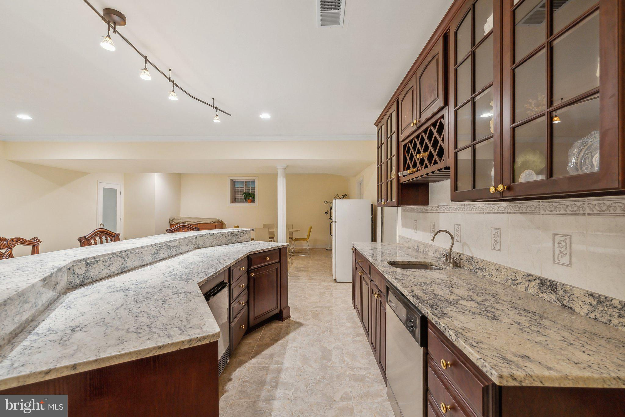 Situated in the heart of prestigious Old Dominion Gardens, this stunning custom brick estate feels like a warm embrace, offering over 9,500 square feet of magnificence and attention to detail. It’s a home where luxury meets comfort, where every room is thoughtfully planned and meticulously crafted to tell a story of elegance and warmth. From the moment you enter through the front door, you’ll be captivated by the inviting ambiance that welcomes you home. The beautiful arched entrances and custom-designed floors with Brazilian wood inlay details on the main level further highlight the exceptional millwork found throughout the home. The grand dual living room, formal dining room, family room, and the additional conservatory meet all your entertaining needs with sophistication and style. Just beyond the formal dining room, a built-in wine cabinet offers additional options to store bar-ware and libations. The expansive gourmet kitchen and breakfast room are flooded with natural light, providing a perfect gathering place. An oversized island offers exceptional workspace, and the butler’s pantry offers additional storage. Enter into your well-appointed executive office with built-in floor-to-ceiling shelves and a double-sided fireplace, a focal point for fireside reading and conversations. Accessible by dual staircases, the upper level of this home continues to impress, designed with every need in mind. It features four bedrooms and four ensuite bathrooms, offering ample room for relaxation and privacy. Occupying the west wing of the upstairs, the primary suite includes an oversized bedroom, a large spa-like bath, with his and hers dressing rooms, and his and hers water closets. The lower level is fully finished, complete with a wet bar and a mini movie theater, creating the ultimate entertainment space. Additionally, this custom home offers a private two-bedroom and two-full-bath living quarters with its own full kitchen, living room, and office. Dual laundry areas—one on the upper level and one on the lower—add convenience to this home. The additional living quarters are approved by the county. Travel outside to lush landscaping surrounding the residence, creating a picturesque backdrop to the spacious deck where you can enjoy alfresco evenings under the stars or simply bask in the serenity of this expansive garden and fully fenced property. An unbeatable location, inside the beltway and just minutes from Tysons Corner, provides easy access to world-class shopping, dining, and entertainment options. Major airports and all the amenities of McLean are at your doorstep, and the address falls within the Langley HS Pyramid.