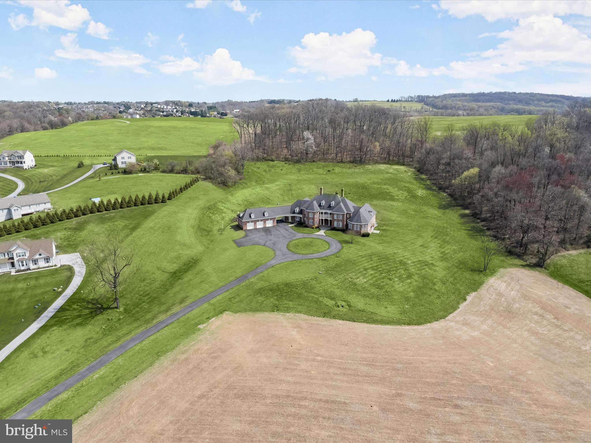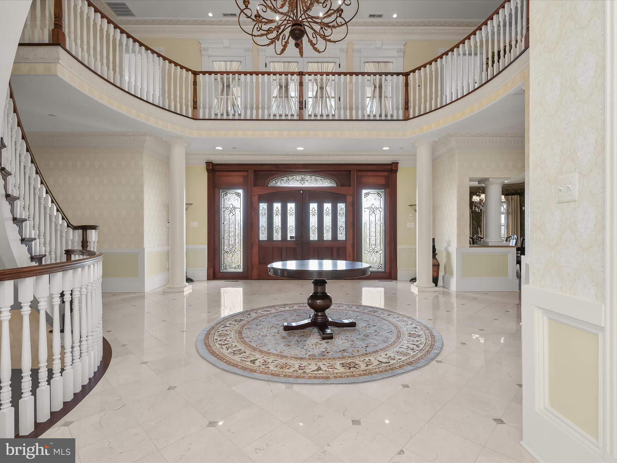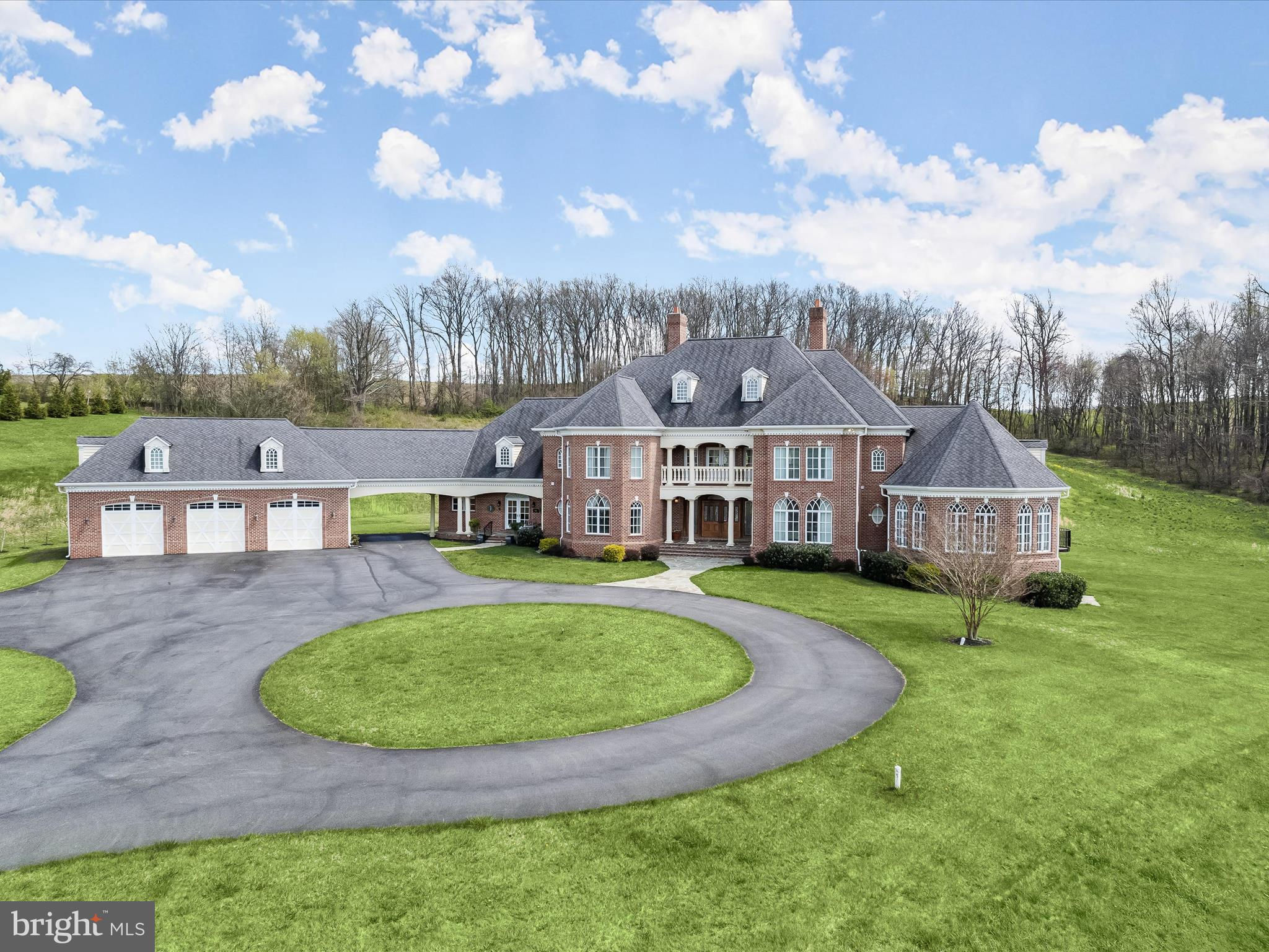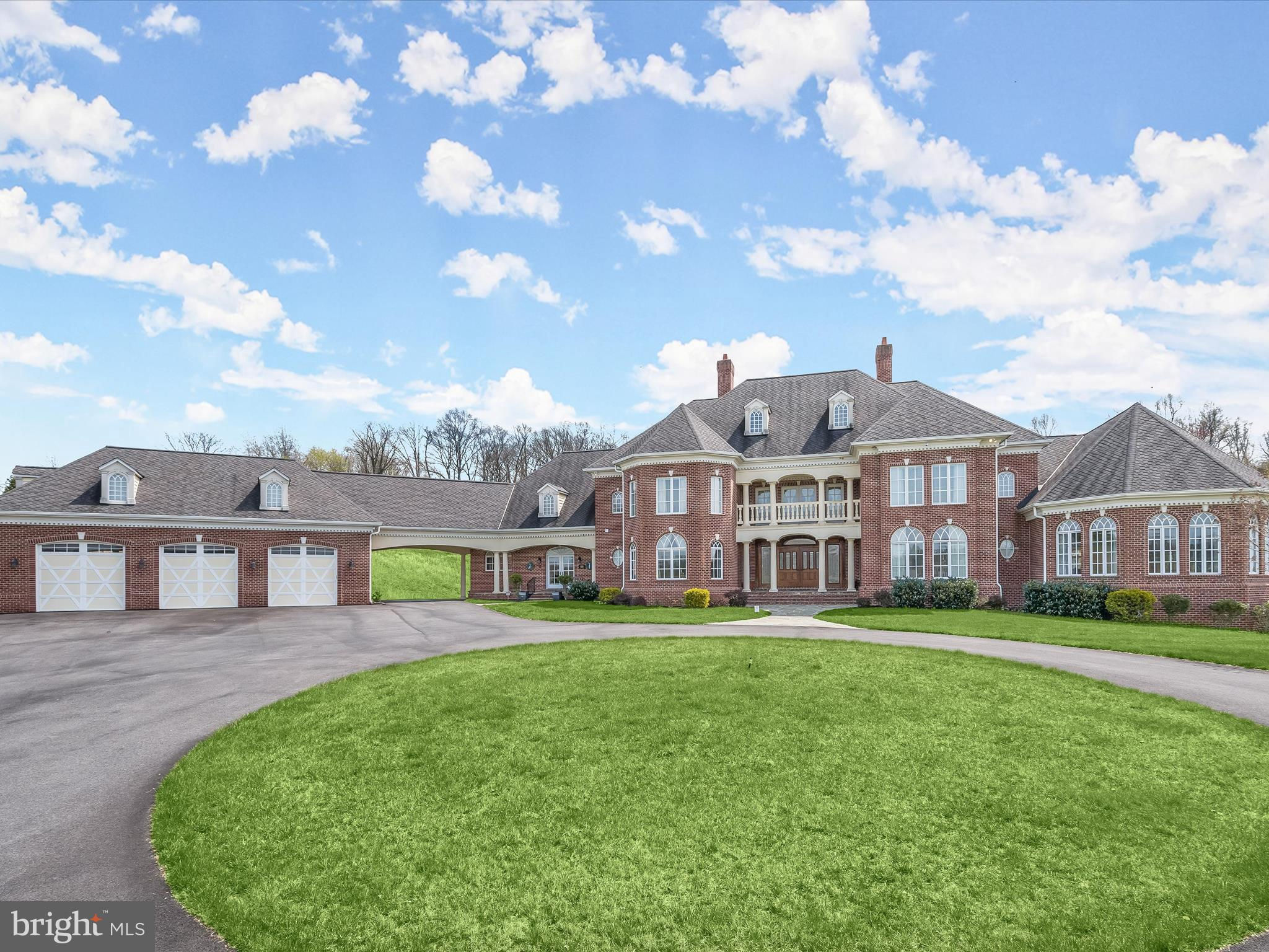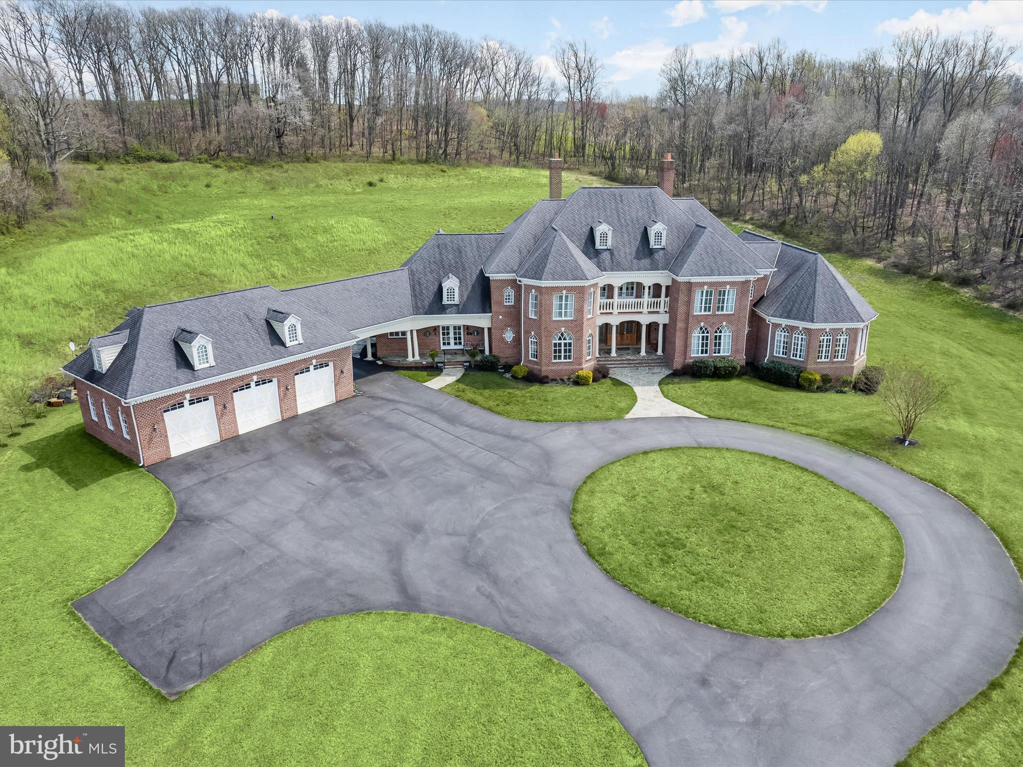 A stately gated entrance and private drive announce arrival to this majestic estate home sited on a hill presiding over 12 rolling acres. A circular drive is centered on the covered front porch and architectural gantry balcony above. The stone porch and commanding wood entry doors are articulated with leaded glass, sidelights, and an elegant eyebrow transom. Inside, a two-story marble foyer is sided by wall niches, curved staircases to upper and lower floors, and a grand hall on each side. Above, a dramatic dome and feature chandelier on a lift add to draw your eye upward with experiential splendor. The grand side halls flanking the foyer open to the banquet-sized Formal Dining Room on one side, and a formal study richly appointed with a brick fireplace on the other. Architectural columns define the foyer as it unfolds through a sweeping central arch into the storied formal living room. A stone arch surrounds a gas fireplace on center axis with three sets of French doors that border the octagonal-shaped living room, each opening to a wrap-around rear porch. The octagonal shape is repeated above in the mezzanine overlook with French doors that open to a rear balcony and sweeping arched windows. Repeated architectural arches, strong multi-piece crown moldings, tall base moldings, and multi-tray ceilings, along with fine finishes, combine to become the design language throughout this luxury estate home. A secondary back stair to upper sleeping quarters is discreetly located adjacent to one of four entry points to the gourmet kitchen and breakfast room, which are the heart of the home. Perfect for gatherings large and small, the floor plan offers traffic flow options and easy passage from room to room, along with speakers in every room for festive occasions. The large gourmet kitchen offers stainless appliances including a professionally sized Viking fridge and freezer, Viking gas range, hood, two dishwashers, walk-in pantry, center island, secondary prep sink, and a peninsula breakfast bar that transitions to an octagonal breakfast room. Architectural brick arches open to the Family room with a cozy brick fireplace and abundant space for large, informal gatherings where guests can meander outside through French doors. Friends and family can enter and exit through a less formal, secondary entry and covered porch, or through the laundry/mudroom side access and covered porch option. Thoughtful design in this floor plan offers versatility and flexibility for change, and lifestyle options. Main level living can be paramount, and this floor plan boasts a dedicated primary suite wing with two fireplaces, sitting area, private balcony, luxury jetted bath, separate vanities, dressing table, and steam shower. The main level is concluded with another secondary en-suite bedroom with a corner built-in and private bath, adjacent to the Primary Suite wing. Upstairs, there are four more en-suite bedrooms, a second laundry with hook-ups, a library with built-in bookcases, and a sixth ensuite bedroom option that is nearly finished. Endless entertainment options abound on two lower levels. Lower level One has a central wrap-around wet bar flanked by two bathrooms and two stair entry options. A fully finished recreation and billiards room share a brick fireplace and butler's service bar. The adjacent exercise room has a partially finished full bath and walk-in closet for expanded flexibility. Opposite the wet bar, a pair of French doors open into an elaborately finished Theater room, outfitted with risers, eight recliners, iPad control projector, screen, surround sound speakers, and sound barrier. Options galore include a light-filled walk-out game area with observation windows open to the sport court and B-Ball hoop below. This is truly an extraordinary home with extraordinary architecture, extraordinary finishes, and extraordinary amenities. Come home to EXTRAORDINARY!