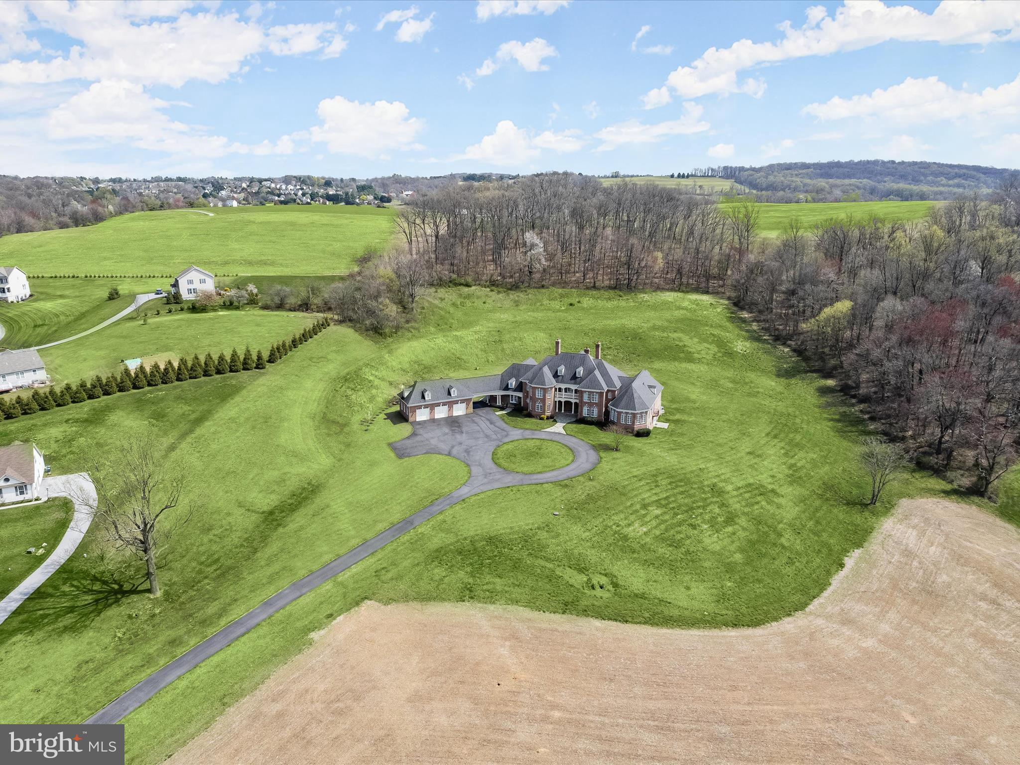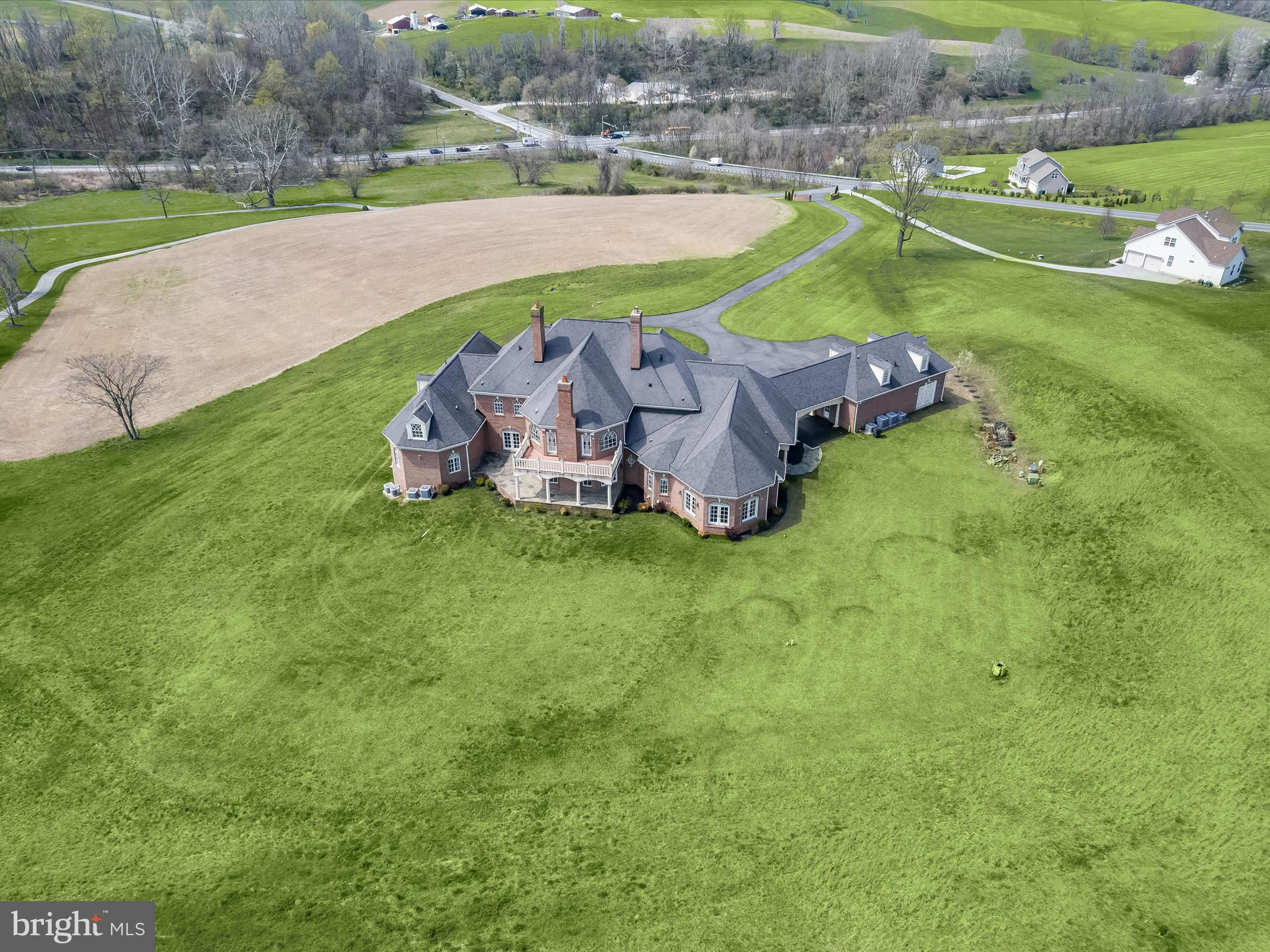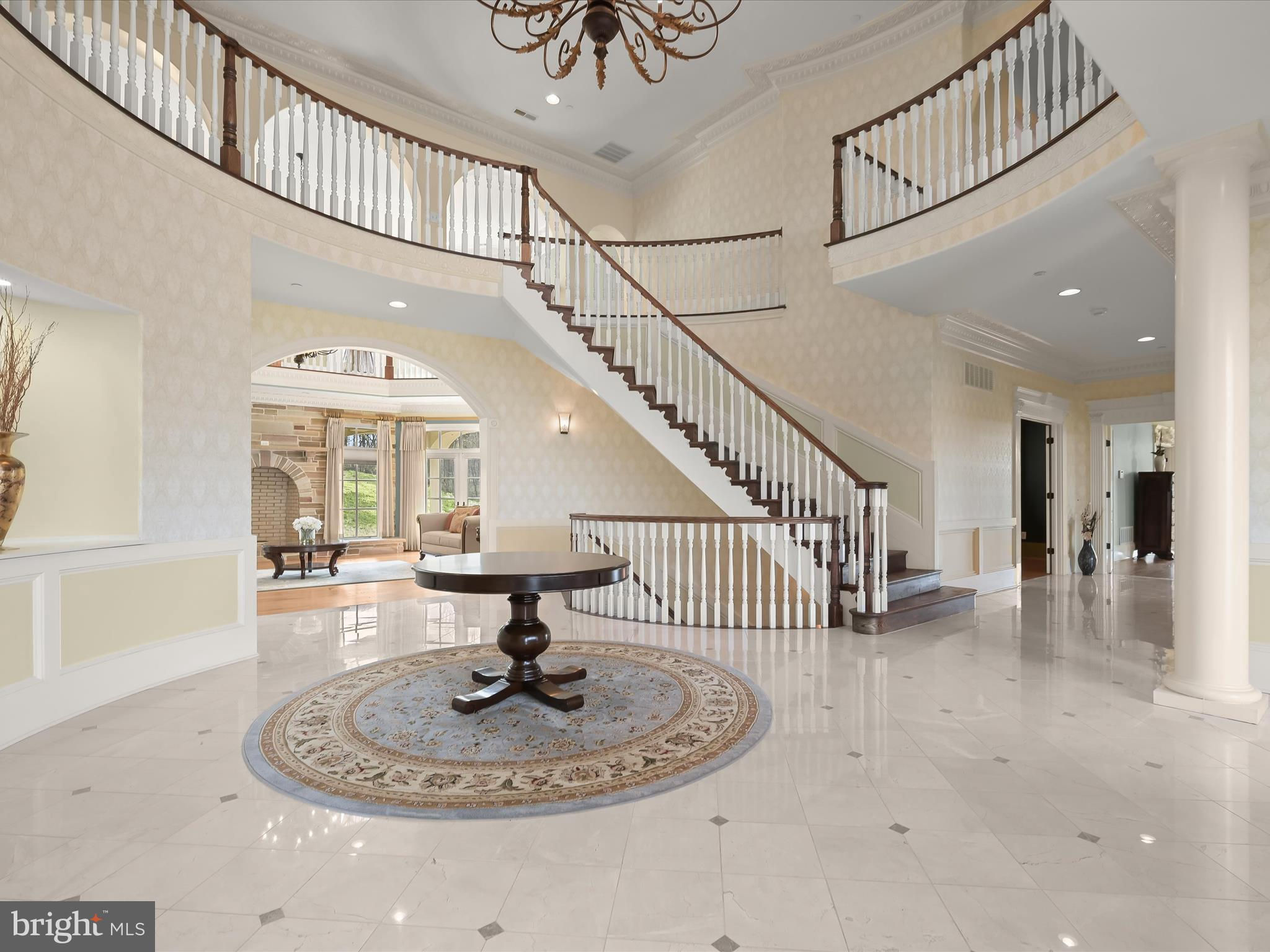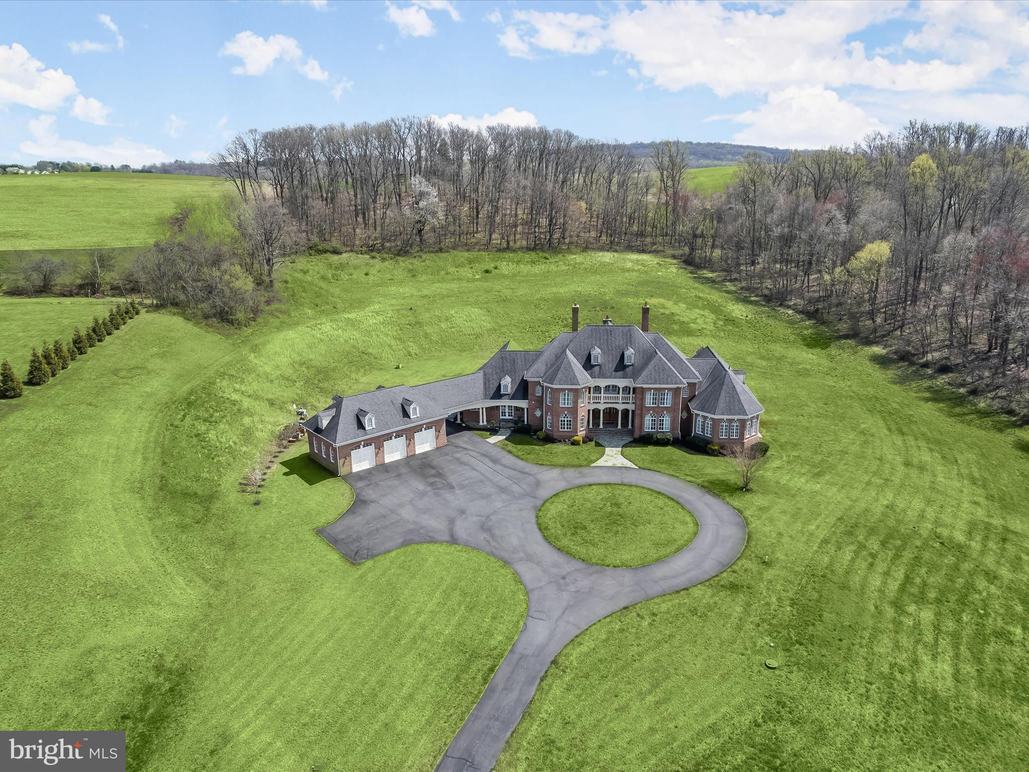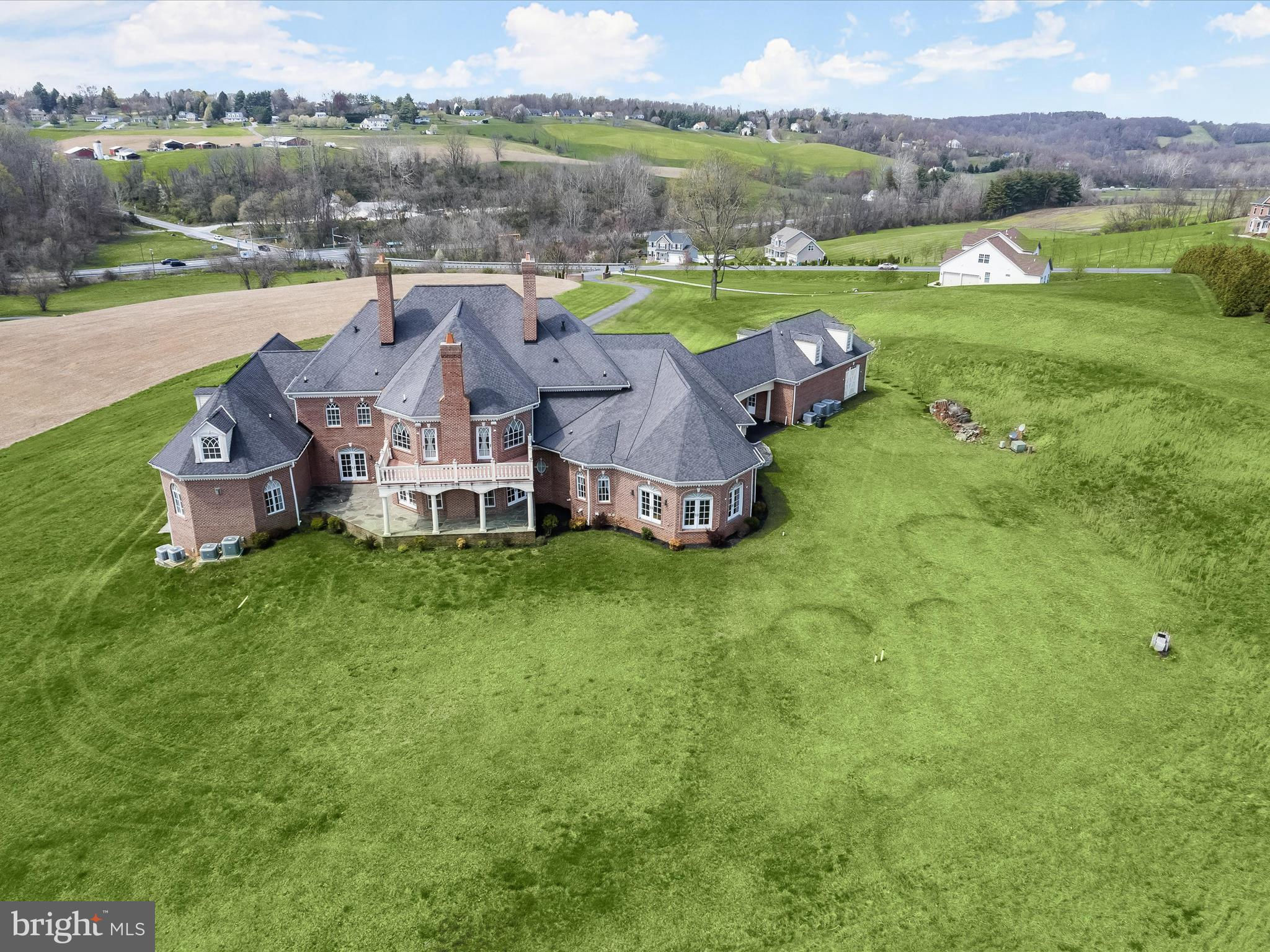 A stately gated entrance and private drive announce arrival to this majestic estate home sited on a hill presiding over 12 rolling acres. A circular drive is centered on the covered front porch and architectural gantry balcony above. The stone porch and commanding wood entry doors are articulated with leaded glass, sidelights, and an elegant eyebrow transom. Inside, a two-story marble foyer is sided by wall niches, curved staircases to upper and lower floors, and a grand hall on each side. Above, a dramatic dome and feature chandelier on a lift add to draw your eye upward with experiential splendor. The grand side halls flanking the foyer open to the banquet-sized Formal Dining Room on one side, and a formal study richly appointed with a brick fireplace on the other. Architectural columns define the foyer as it unfolds through a sweeping central arch into the storied formal living room. A stone arch surrounds a gas fireplace on center axis with three sets of French doors that border the octagonal-shaped living room, each opening to a wrap-around rear porch. The octagonal shape is repeated above in the mezzanine overlook with French doors that open to a rear balcony and sweeping arched windows. Repeated architectural arches, strong multi-piece crown moldings, tall base moldings, and multi-tray ceilings, along with fine finishes, combine to become the design language throughout this luxury estate home. A secondary back stair to upper sleeping quarters is discreetly located adjacent to one of four entry points to the gourmet kitchen and breakfast room, which are the heart of the home. Perfect for gatherings large and small, the floor plan offers traffic flow options and easy passage from room to room, along with speakers in every room for festive occasions. The large gourmet kitchen offers stainless appliances including a professionally sized Viking fridge and freezer, Viking gas range, hood, two dishwashers, walk-in pantry, center island, secondary prep sink, and a peninsula breakfast bar that transitions to an octagonal breakfast room. Architectural brick arches open to the Family room with a cozy brick fireplace and abundant space for large, informal gatherings where guests can meander outside through French doors. Friends and family can enter and exit through a less formal, secondary entry and covered porch, or through the laundry/mudroom side access and covered porch option. Thoughtful design in this floor plan offers versatility and flexibility for change, and lifestyle options. Main level living can be paramount, and this floor plan boasts a dedicated primary suite wing with two fireplaces, sitting area, private balcony, luxury jetted bath, separate vanities, dressing table, and steam shower. The main level is concluded with another secondary en-suite bedroom with a corner built-in and private bath, adjacent to the Primary Suite wing. Upstairs, there are four more en-suite bedrooms, a second laundry with hook-ups, a library with built-in bookcases, and a sixth ensuite bedroom option that is nearly finished. Endless entertainment options abound on two lower levels. Lower level One has a central wrap-around wet bar flanked by two bathrooms and two stair entry options. A fully finished recreation and billiards room share a brick fireplace and butler's service bar. The adjacent exercise room has a partially finished full bath and walk-in closet for expanded flexibility. Opposite the wet bar, a pair of French doors open into an elaborately finished Theater room, outfitted with risers, eight recliners, iPad control projector, screen, surround sound speakers, and sound barrier. Options galore include a light-filled walk-out game area with observation windows open to the sport court and B-Ball hoop below. This is truly an extraordinary home with extraordinary architecture, extraordinary finishes, and extraordinary amenities. Come home to EXTRAORDINARY!