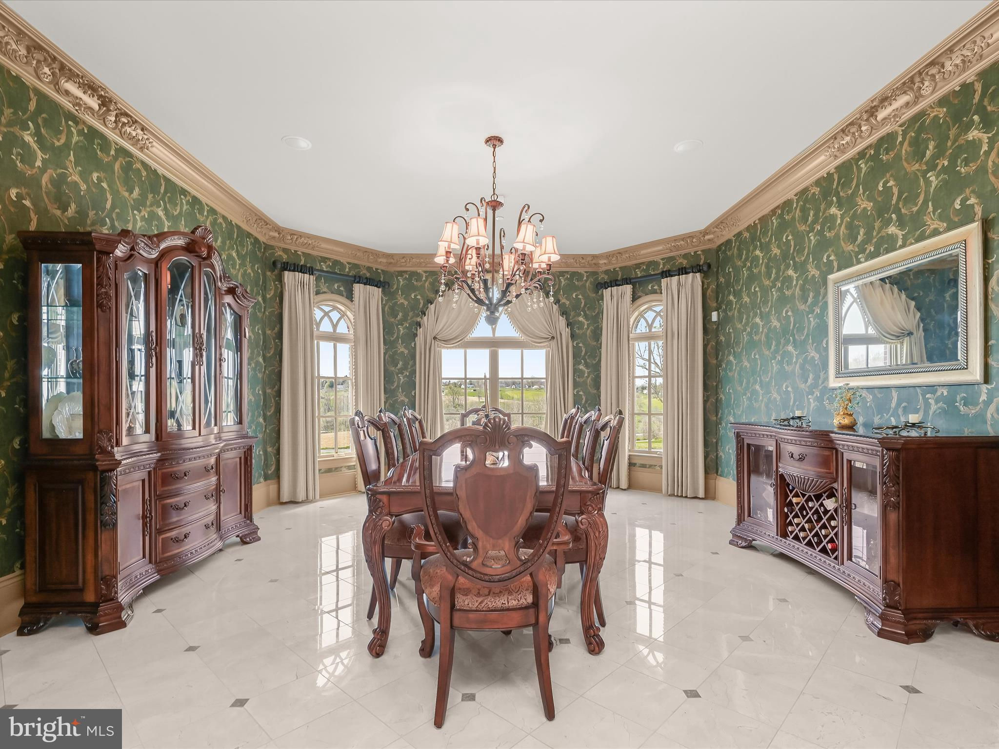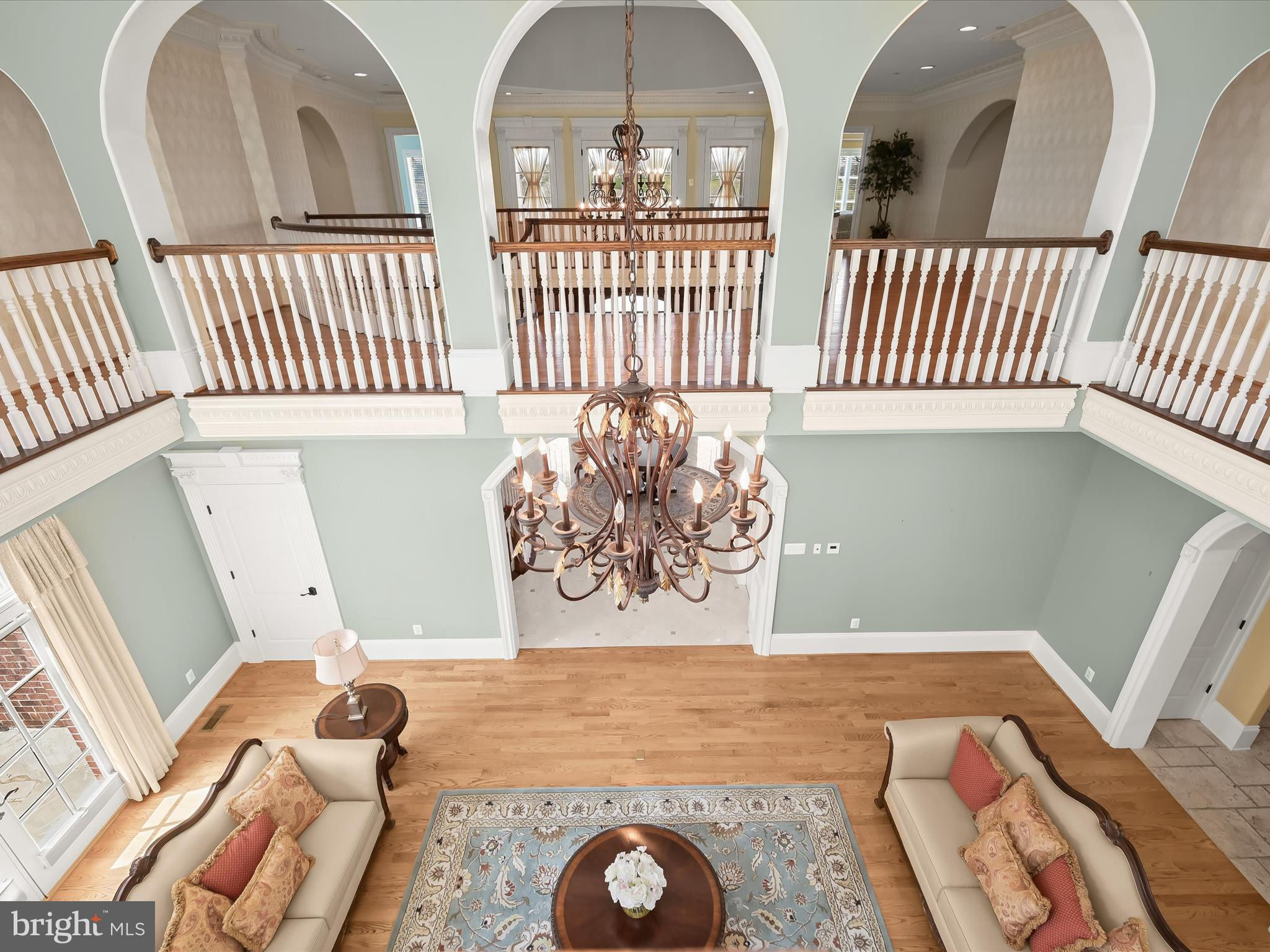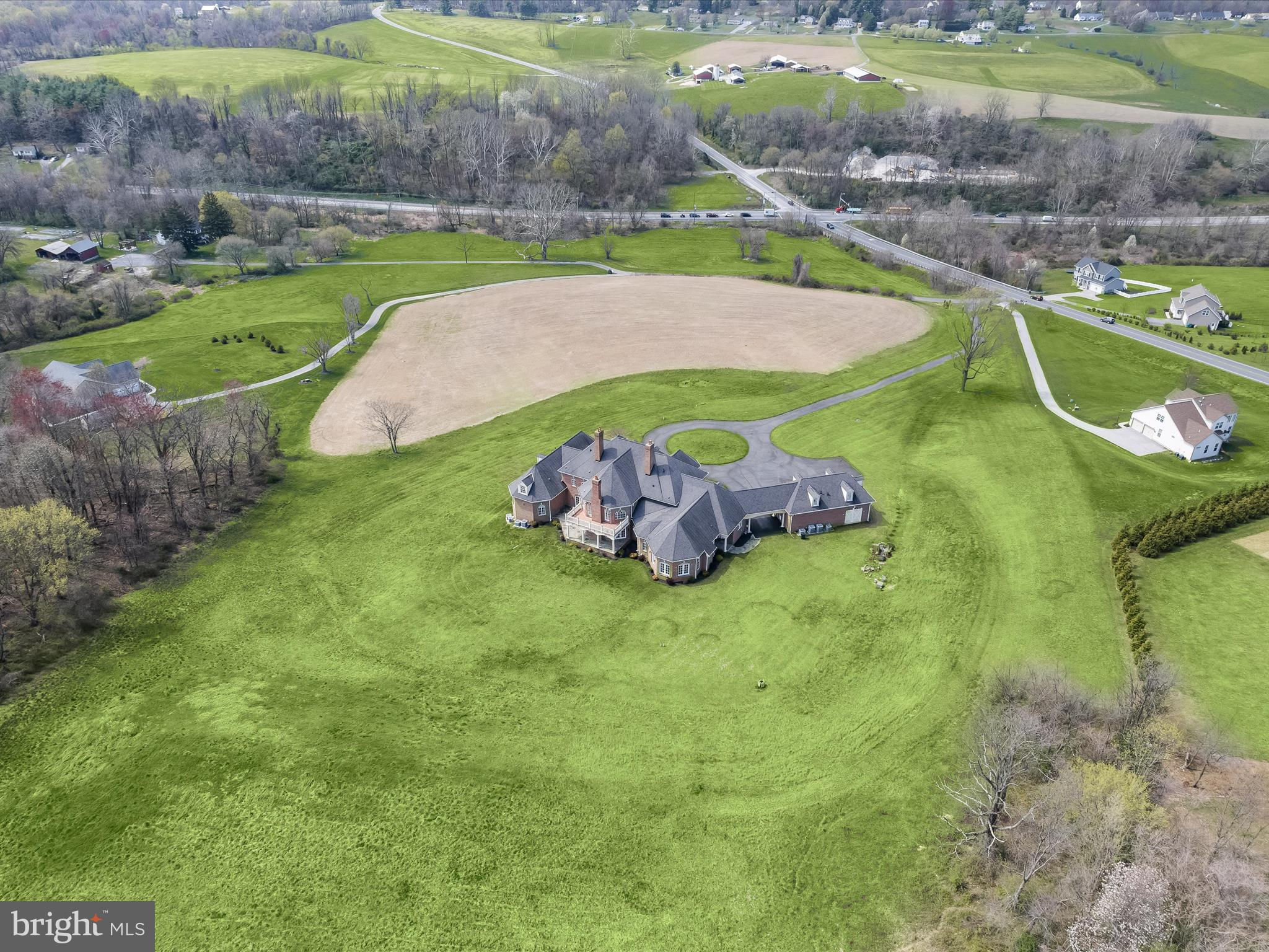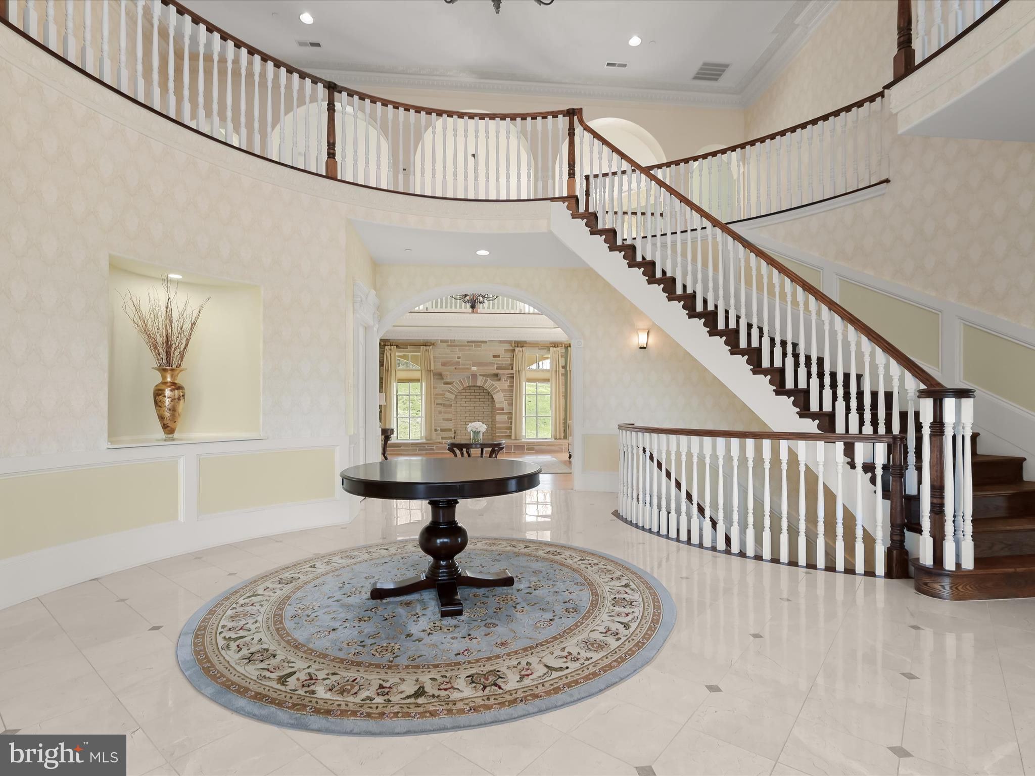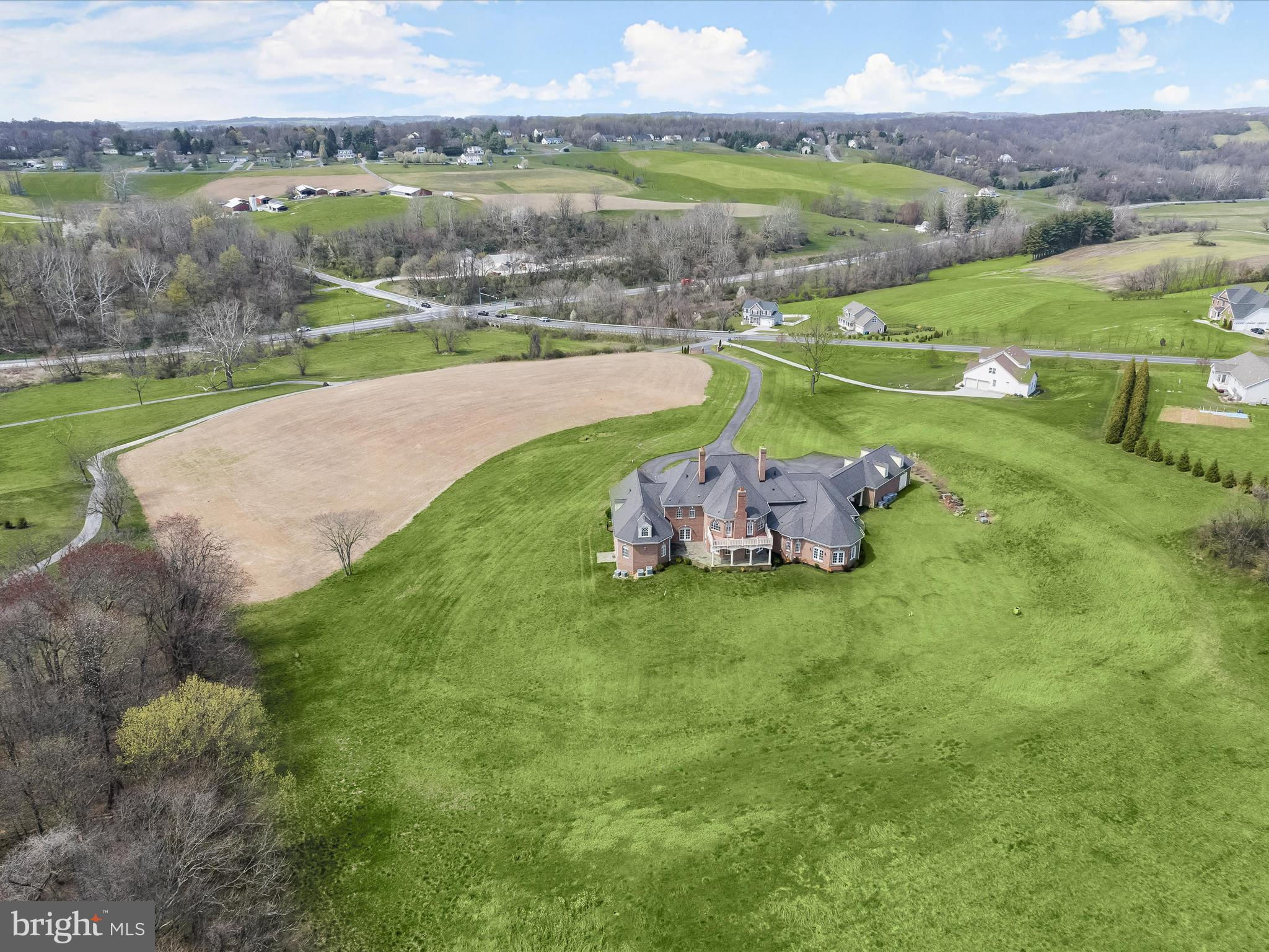 A stately gated entrance and private drive announce arrival to this majestic estate home sited on a hill presiding over 12 rolling acres. A circular drive is centered on the covered front porch and architectural gantry balcony above. The stone porch and commanding wood entry doors are articulated with leaded glass, sidelights, and an elegant eyebrow transom. Inside, a two-story marble foyer is sided by wall niches, curved staircases to upper and lower floors, and a grand hall on each side. Above, a dramatic dome and feature chandelier on a lift add to draw your eye upward with experiential splendor. The grand side halls flanking the foyer open to the banquet-sized Formal Dining Room on one side, and a formal study richly appointed with a brick fireplace on the other. Architectural columns define the foyer as it unfolds through a sweeping central arch into the storied formal living room. A stone arch surrounds a gas fireplace on center axis with three sets of French doors that border the octagonal-shaped living room, each opening to a wrap-around rear porch. The octagonal shape is repeated above in the mezzanine overlook with French doors that open to a rear balcony and sweeping arched windows. Repeated architectural arches, strong multi-piece crown moldings, tall base moldings, and multi-tray ceilings, along with fine finishes, combine to become the design language throughout this luxury estate home. A secondary back stair to upper sleeping quarters is discreetly located adjacent to one of four entry points to the gourmet kitchen and breakfast room, which are the heart of the home. Perfect for gatherings large and small, the floor plan offers traffic flow options and easy passage from room to room, along with speakers in every room for festive occasions. The large gourmet kitchen offers stainless appliances including a professionally sized Viking fridge and freezer, Viking gas range, hood, two dishwashers, walk-in pantry, center island, secondary prep sink, and a peninsula breakfast bar that transitions to an octagonal breakfast room. Architectural brick arches open to the Family room with a cozy brick fireplace and abundant space for large, informal gatherings where guests can meander outside through French doors. Friends and family can enter and exit through a less formal, secondary entry and covered porch, or through the laundry/mudroom side access and covered porch option. Thoughtful design in this floor plan offers versatility and flexibility for change, and lifestyle options. Main level living can be paramount, and this floor plan boasts a dedicated primary suite wing with two fireplaces, sitting area, private balcony, luxury jetted bath, separate vanities, dressing table, and steam shower. The main level is concluded with another secondary en-suite bedroom with a corner built-in and private bath, adjacent to the Primary Suite wing. Upstairs, there are four more en-suite bedrooms, a second laundry with hook-ups, a library with built-in bookcases, and a sixth ensuite bedroom option that is nearly finished. Endless entertainment options abound on two lower levels. Lower level One has a central wrap-around wet bar flanked by two bathrooms and two stair entry options. A fully finished recreation and billiards room share a brick fireplace and butler's service bar. The adjacent exercise room has a partially finished full bath and walk-in closet for expanded flexibility. Opposite the wet bar, a pair of French doors open into an elaborately finished Theater room, outfitted with risers, eight recliners, iPad control projector, screen, surround sound speakers, and sound barrier. Options galore include a light-filled walk-out game area with observation windows open to the sport court and B-Ball hoop below. This is truly an extraordinary home with extraordinary architecture, extraordinary finishes, and extraordinary amenities. Come home to EXTRAORDINARY!