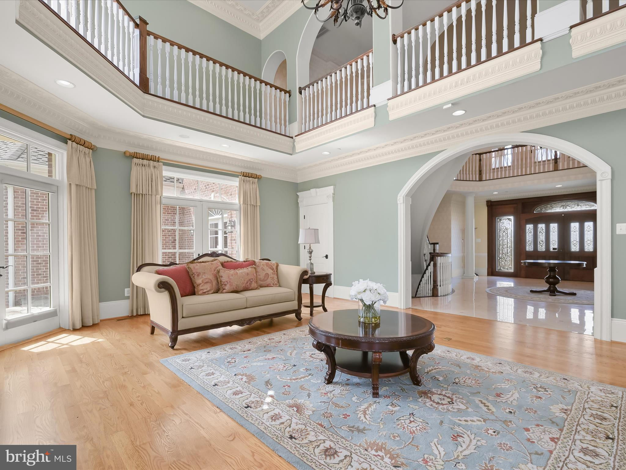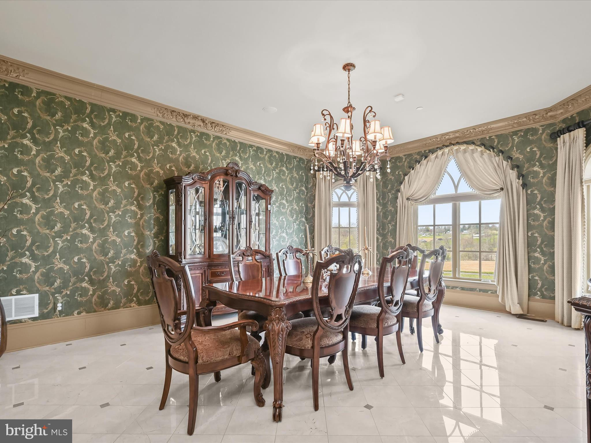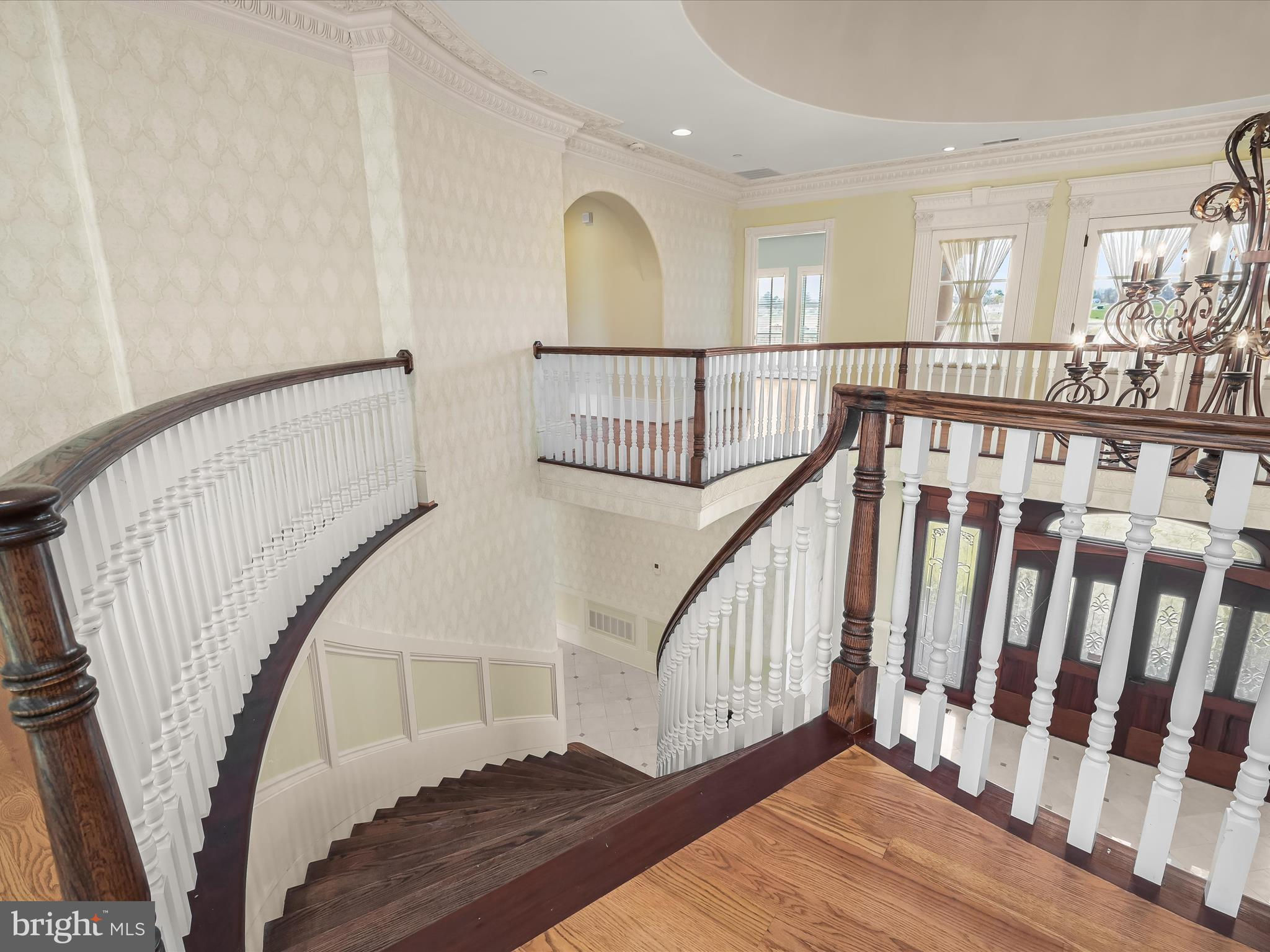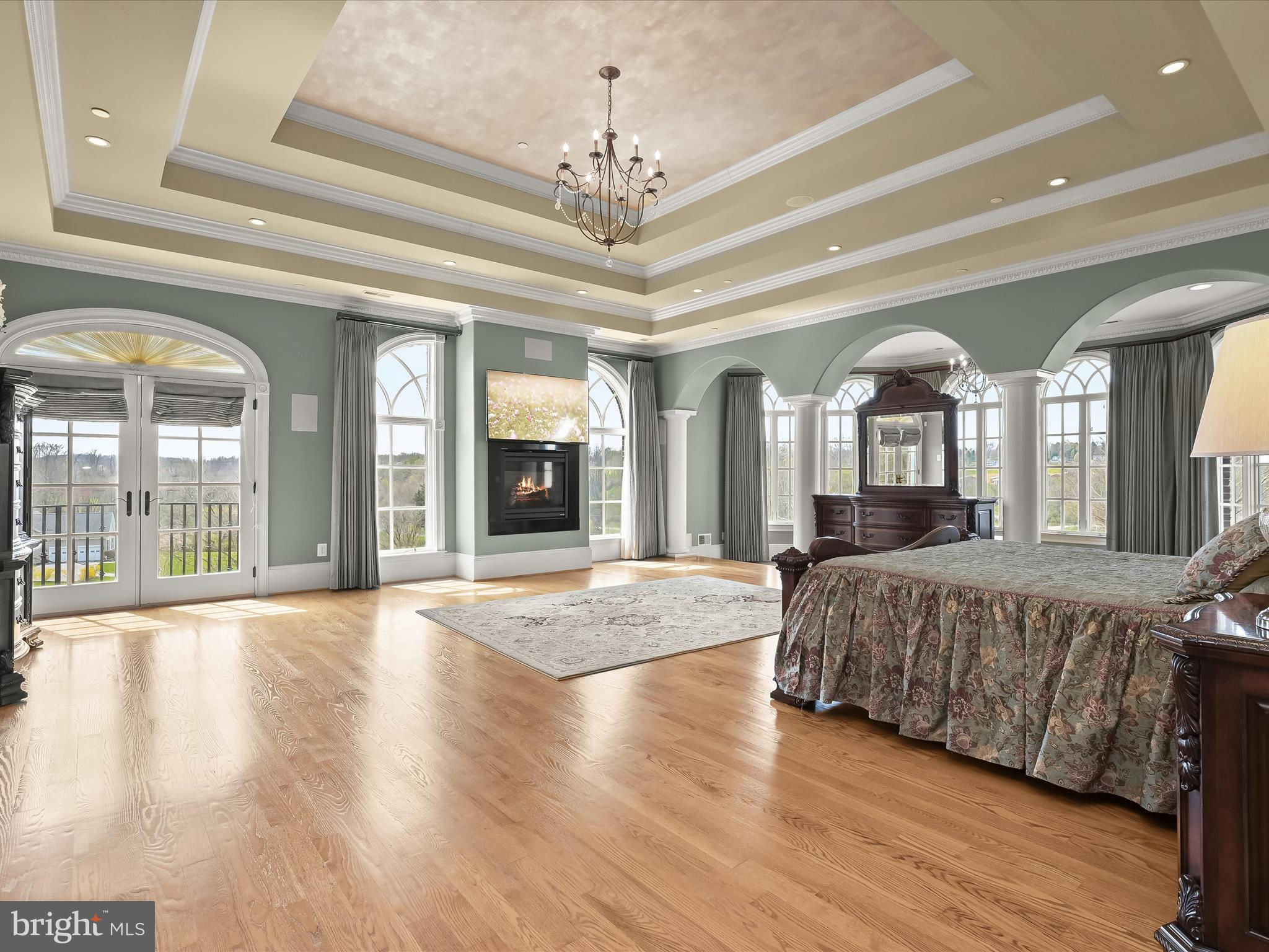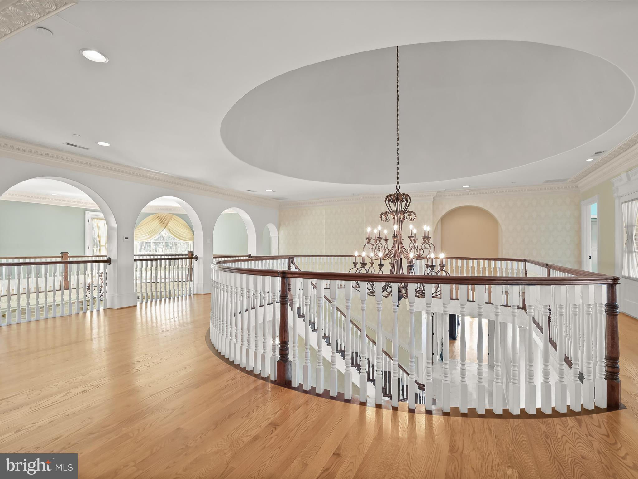 A stately gated entrance and private drive announce arrival to this majestic estate home sited on a hill presiding over 12 rolling acres. A circular drive is centered on the covered front porch and architectural gantry balcony above. The stone porch and commanding wood entry doors are articulated with leaded glass, sidelights, and an elegant eyebrow transom. Inside, a two-story marble foyer is sided by wall niches, curved staircases to upper and lower floors, and a grand hall on each side. Above, a dramatic dome and feature chandelier on a lift add to draw your eye upward with experiential splendor. The grand side halls flanking the foyer open to the banquet-sized Formal Dining Room on one side, and a formal study richly appointed with a brick fireplace on the other. Architectural columns define the foyer as it unfolds through a sweeping central arch into the storied formal living room. A stone arch surrounds a gas fireplace on center axis with three sets of French doors that border the octagonal-shaped living room, each opening to a wrap-around rear porch. The octagonal shape is repeated above in the mezzanine overlook with French doors that open to a rear balcony and sweeping arched windows. Repeated architectural arches, strong multi-piece crown moldings, tall base moldings, and multi-tray ceilings, along with fine finishes, combine to become the design language throughout this luxury estate home. A secondary back stair to upper sleeping quarters is discreetly located adjacent to one of four entry points to the gourmet kitchen and breakfast room, which are the heart of the home. Perfect for gatherings large and small, the floor plan offers traffic flow options and easy passage from room to room, along with speakers in every room for festive occasions. The large gourmet kitchen offers stainless appliances including a professionally sized Viking fridge and freezer, Viking gas range, hood, two dishwashers, walk-in pantry, center island, secondary prep sink, and a peninsula breakfast bar that transitions to an octagonal breakfast room. Architectural brick arches open to the Family room with a cozy brick fireplace and abundant space for large, informal gatherings where guests can meander outside through French doors. Friends and family can enter and exit through a less formal, secondary entry and covered porch, or through the laundry/mudroom side access and covered porch option. Thoughtful design in this floor plan offers versatility and flexibility for change, and lifestyle options. Main level living can be paramount, and this floor plan boasts a dedicated primary suite wing with two fireplaces, sitting area, private balcony, luxury jetted bath, separate vanities, dressing table, and steam shower. The main level is concluded with another secondary en-suite bedroom with a corner built-in and private bath, adjacent to the Primary Suite wing. Upstairs, there are four more en-suite bedrooms, a second laundry with hook-ups, a library with built-in bookcases, and a sixth ensuite bedroom option that is nearly finished. Endless entertainment options abound on two lower levels. Lower level One has a central wrap-around wet bar flanked by two bathrooms and two stair entry options. A fully finished recreation and billiards room share a brick fireplace and butler's service bar. The adjacent exercise room has a partially finished full bath and walk-in closet for expanded flexibility. Opposite the wet bar, a pair of French doors open into an elaborately finished Theater room, outfitted with risers, eight recliners, iPad control projector, screen, surround sound speakers, and sound barrier. Options galore include a light-filled walk-out game area with observation windows open to the sport court and B-Ball hoop below. This is truly an extraordinary home with extraordinary architecture, extraordinary finishes, and extraordinary amenities. Come home to EXTRAORDINARY!