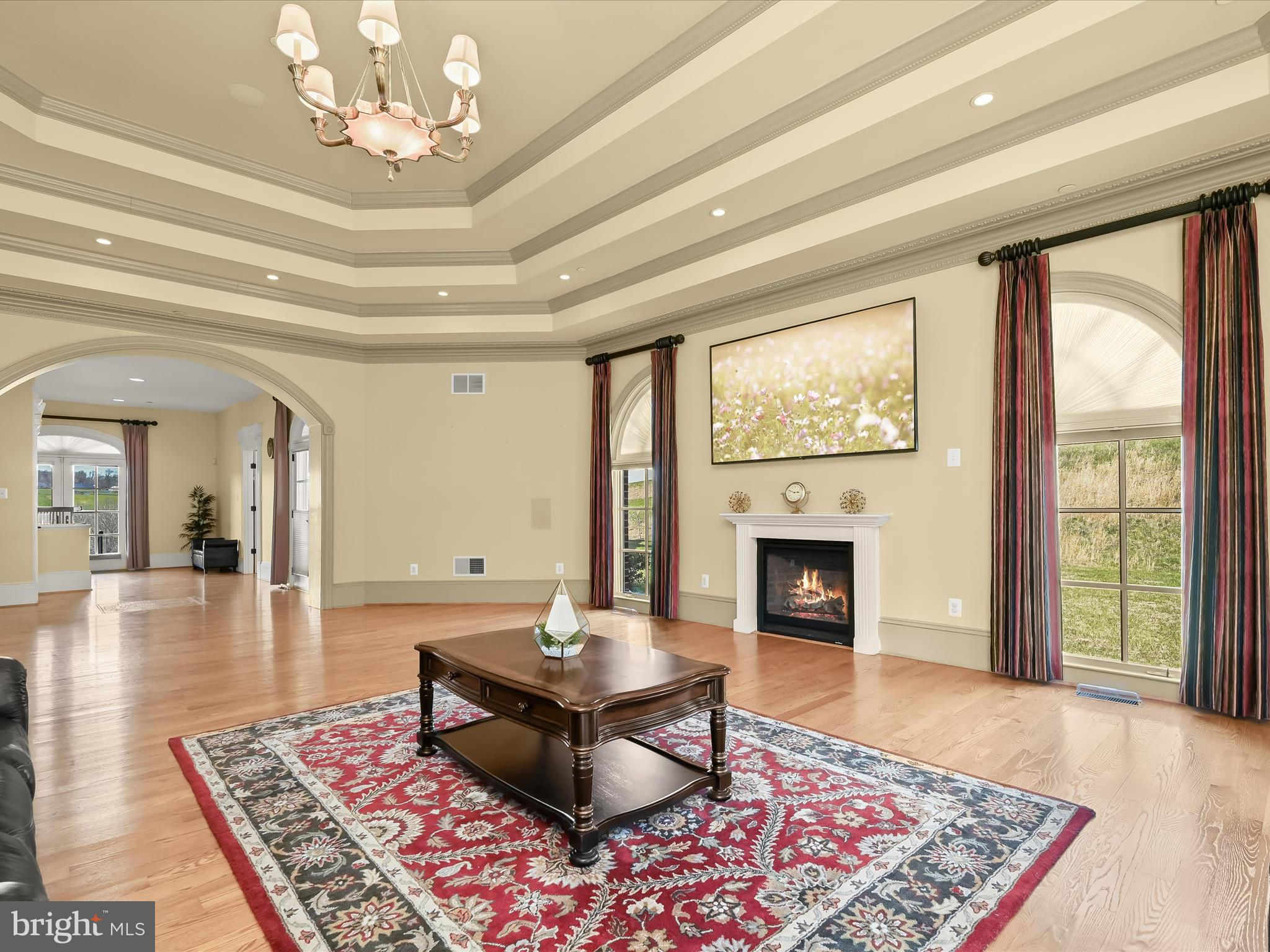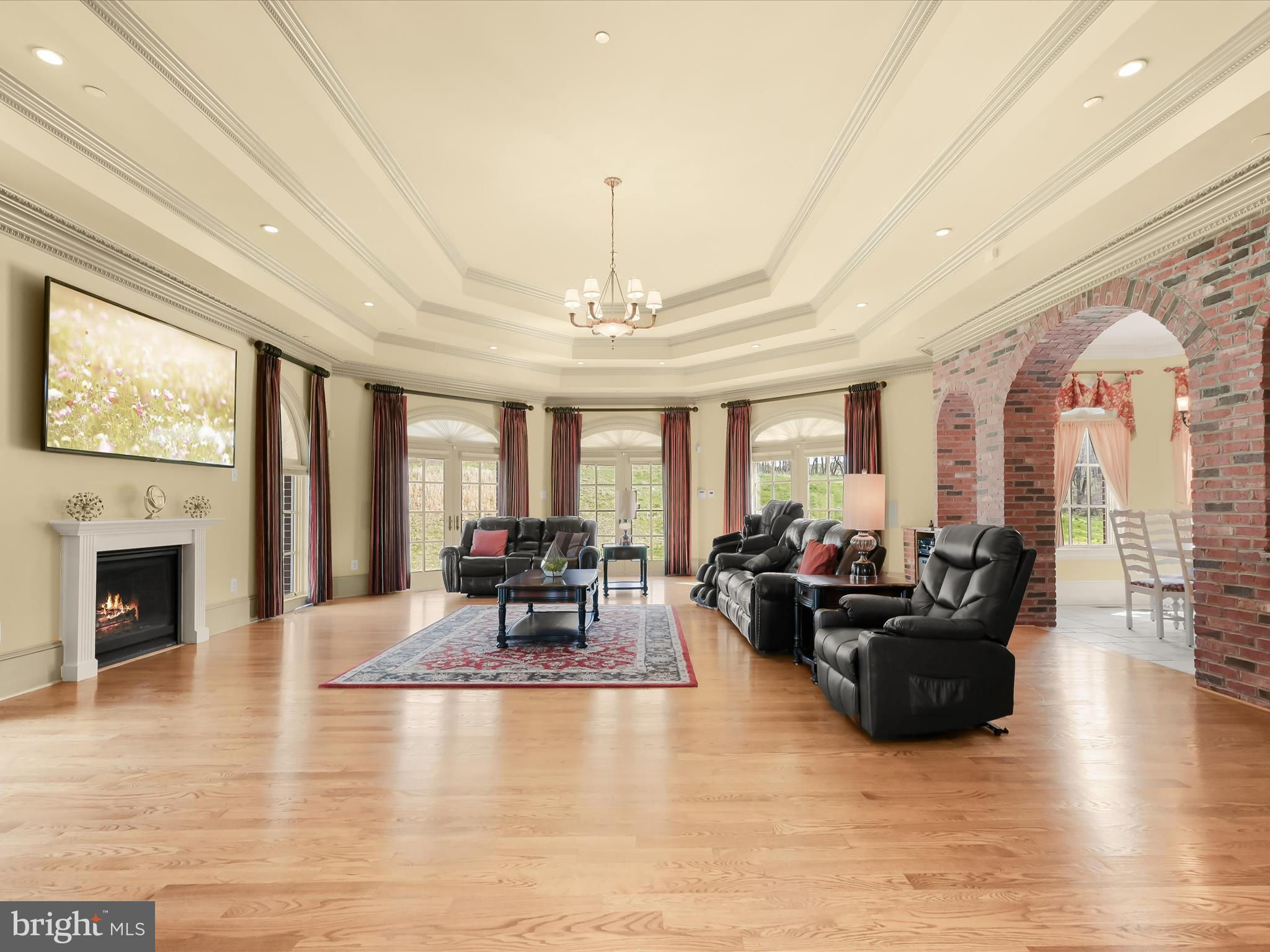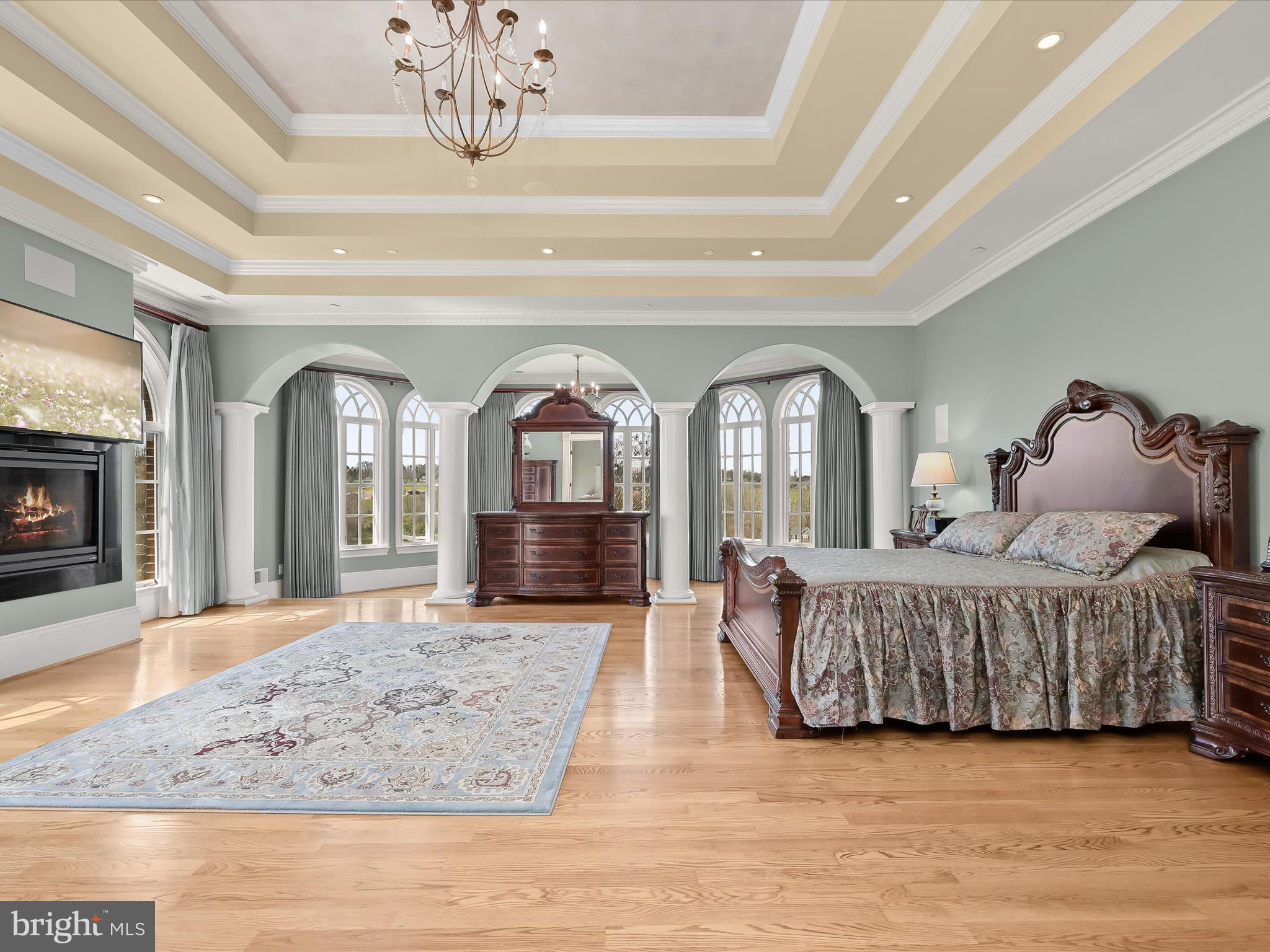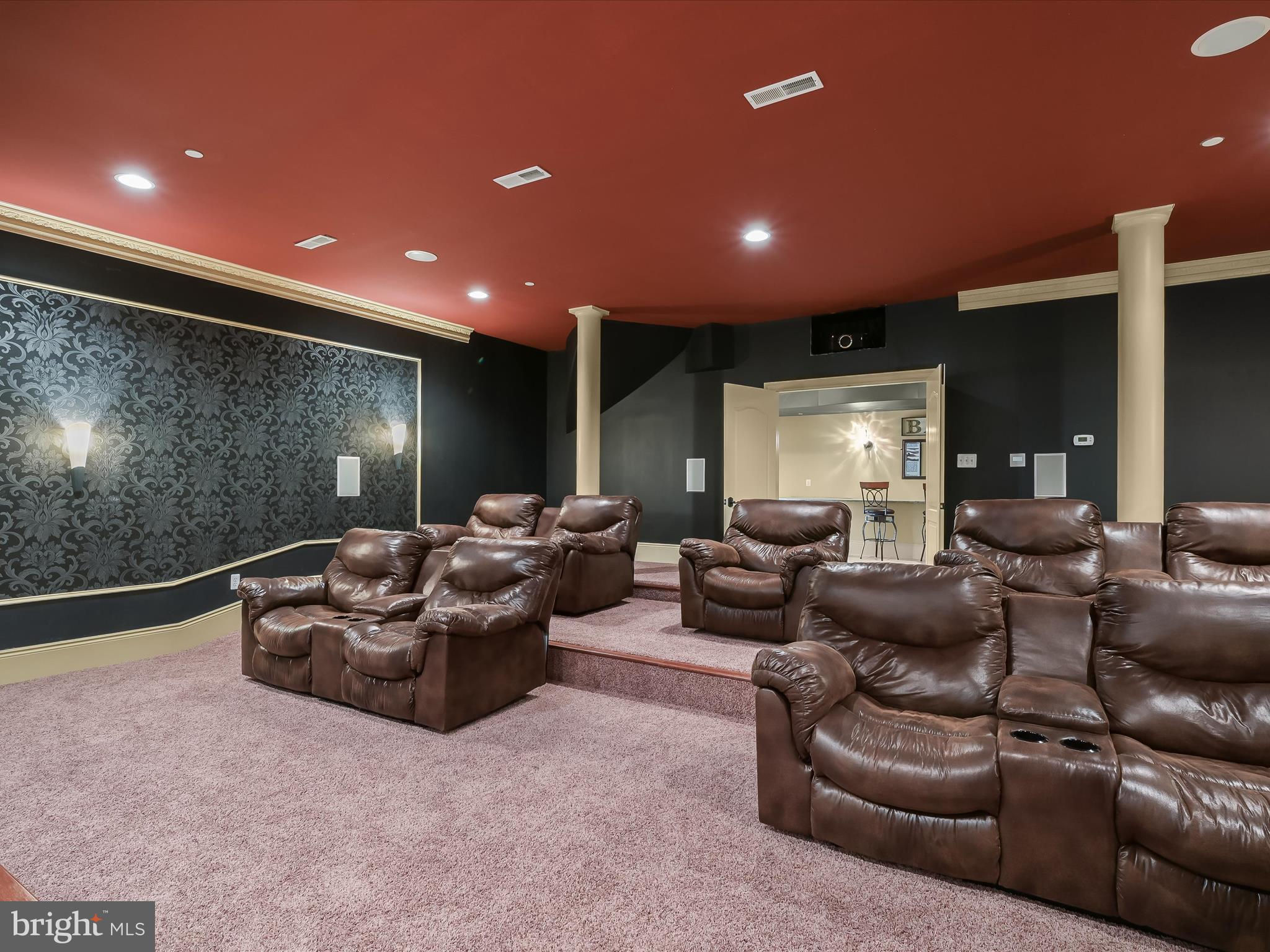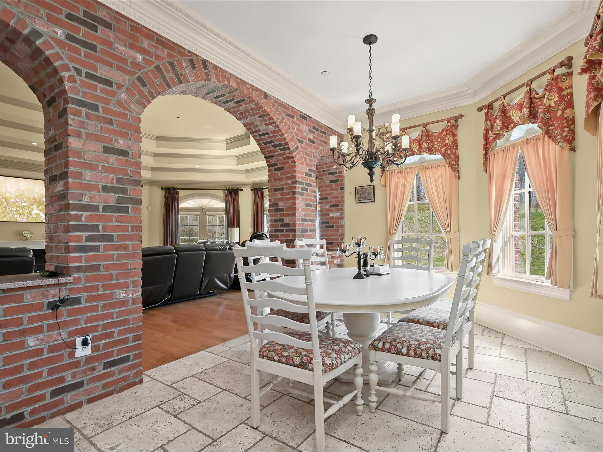 A stately gated entrance and private drive announce arrival to this majestic estate home sited on a hill presiding over 12 rolling acres. A circular drive is centered on the covered front porch and architectural gantry balcony above. The stone porch and commanding wood entry doors are articulated with leaded glass, sidelights, and an elegant eyebrow transom. Inside, a two-story marble foyer is sided by wall niches, curved staircases to upper and lower floors, and a grand hall on each side. Above, a dramatic dome and feature chandelier on a lift add to draw your eye upward with experiential splendor. The grand side halls flanking the foyer open to the banquet-sized Formal Dining Room on one side, and a formal study richly appointed with a brick fireplace on the other. Architectural columns define the foyer as it unfolds through a sweeping central arch into the storied formal living room. A stone arch surrounds a gas fireplace on center axis with three sets of French doors that border the octagonal-shaped living room, each opening to a wrap-around rear porch. The octagonal shape is repeated above in the mezzanine overlook with French doors that open to a rear balcony and sweeping arched windows. Repeated architectural arches, strong multi-piece crown moldings, tall base moldings, and multi-tray ceilings, along with fine finishes, combine to become the design language throughout this luxury estate home. A secondary back stair to upper sleeping quarters is discreetly located adjacent to one of four entry points to the gourmet kitchen and breakfast room, which are the heart of the home. Perfect for gatherings large and small, the floor plan offers traffic flow options and easy passage from room to room, along with speakers in every room for festive occasions. The large gourmet kitchen offers stainless appliances including a professionally sized Viking fridge and freezer, Viking gas range, hood, two dishwashers, walk-in pantry, center island, secondary prep sink, and a peninsula breakfast bar that transitions to an octagonal breakfast room. Architectural brick arches open to the Family room with a cozy brick fireplace and abundant space for large, informal gatherings where guests can meander outside through French doors. Friends and family can enter and exit through a less formal, secondary entry and covered porch, or through the laundry/mudroom side access and covered porch option. Thoughtful design in this floor plan offers versatility and flexibility for change, and lifestyle options. Main level living can be paramount, and this floor plan boasts a dedicated primary suite wing with two fireplaces, sitting area, private balcony, luxury jetted bath, separate vanities, dressing table, and steam shower. The main level is concluded with another secondary en-suite bedroom with a corner built-in and private bath, adjacent to the Primary Suite wing. Upstairs, there are four more en-suite bedrooms, a second laundry with hook-ups, a library with built-in bookcases, and a sixth ensuite bedroom option that is nearly finished. Endless entertainment options abound on two lower levels. Lower level One has a central wrap-around wet bar flanked by two bathrooms and two stair entry options. A fully finished recreation and billiards room share a brick fireplace and butler's service bar. The adjacent exercise room has a partially finished full bath and walk-in closet for expanded flexibility. Opposite the wet bar, a pair of French doors open into an elaborately finished Theater room, outfitted with risers, eight recliners, iPad control projector, screen, surround sound speakers, and sound barrier. Options galore include a light-filled walk-out game area with observation windows open to the sport court and B-Ball hoop below. This is truly an extraordinary home with extraordinary architecture, extraordinary finishes, and extraordinary amenities. Come home to EXTRAORDINARY!