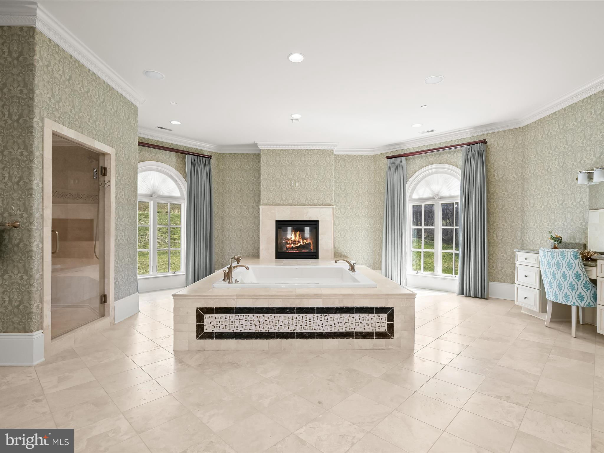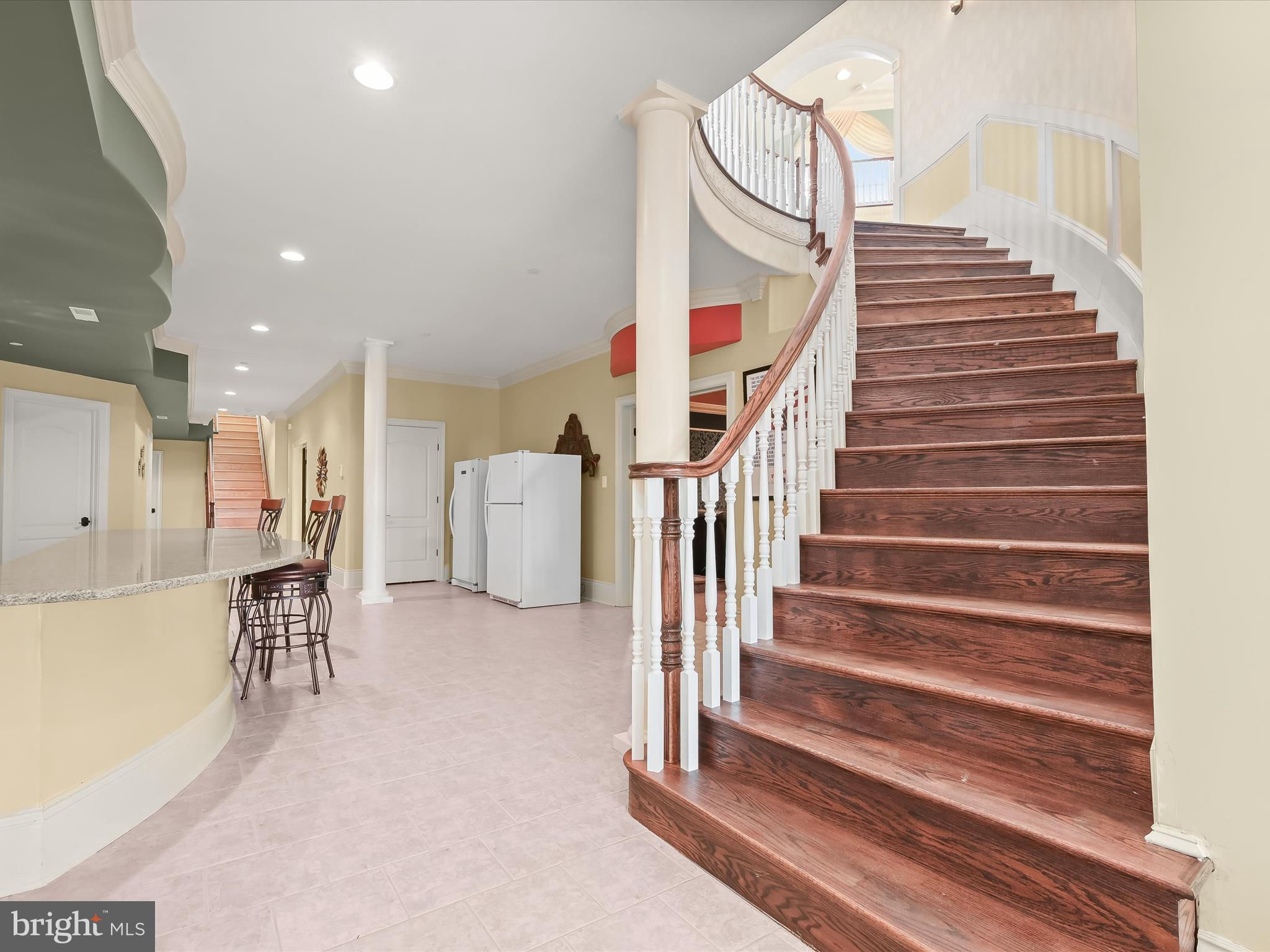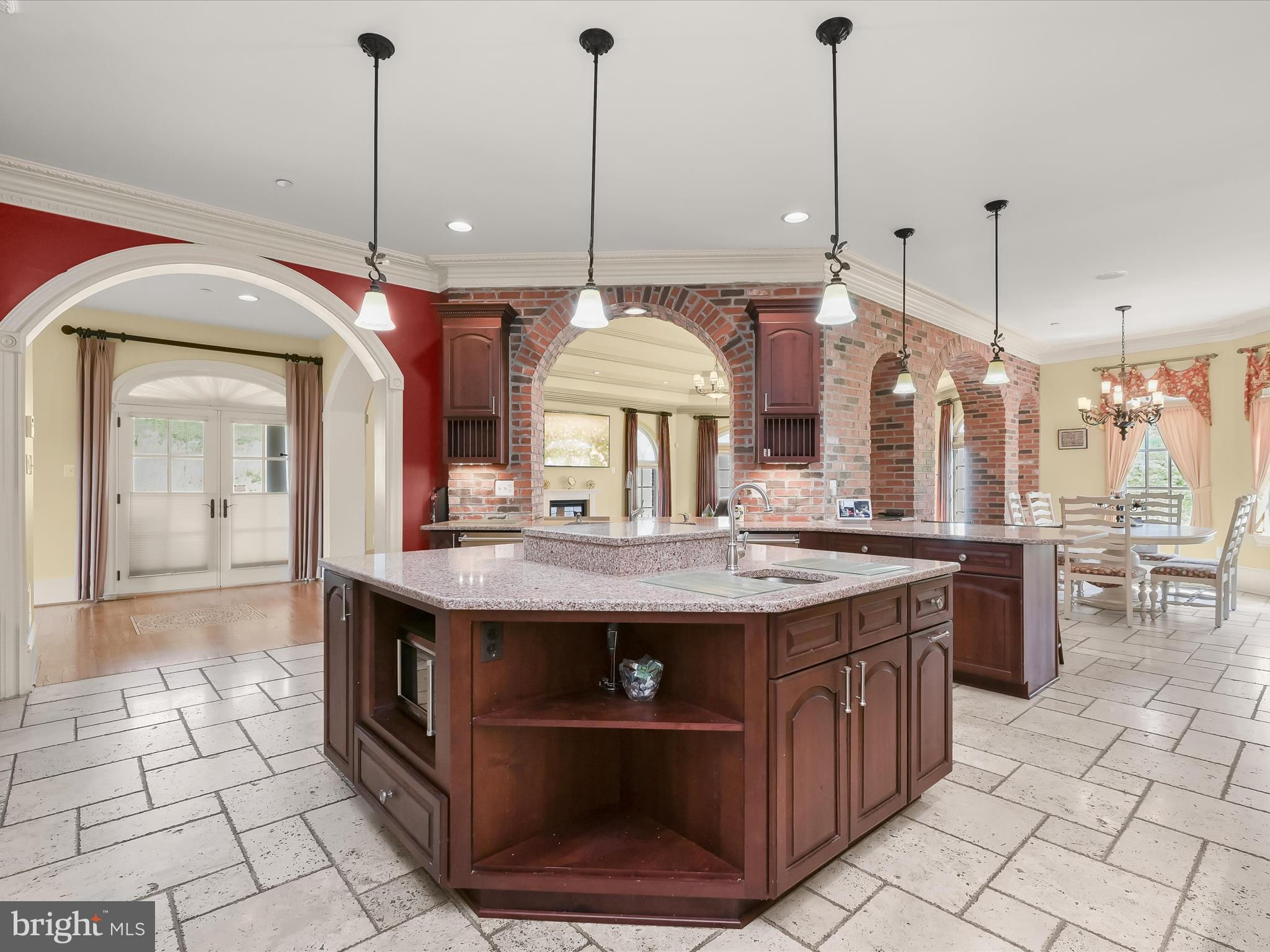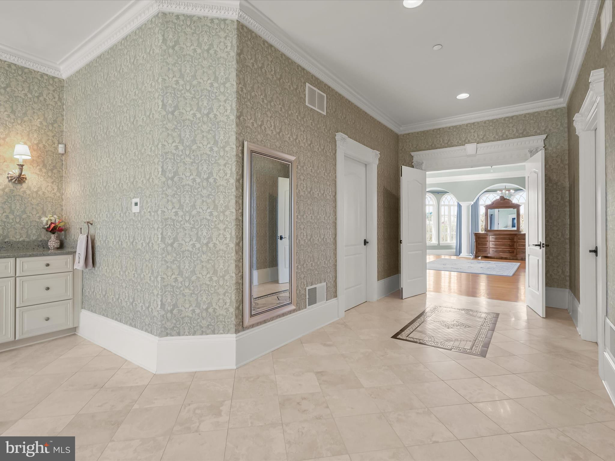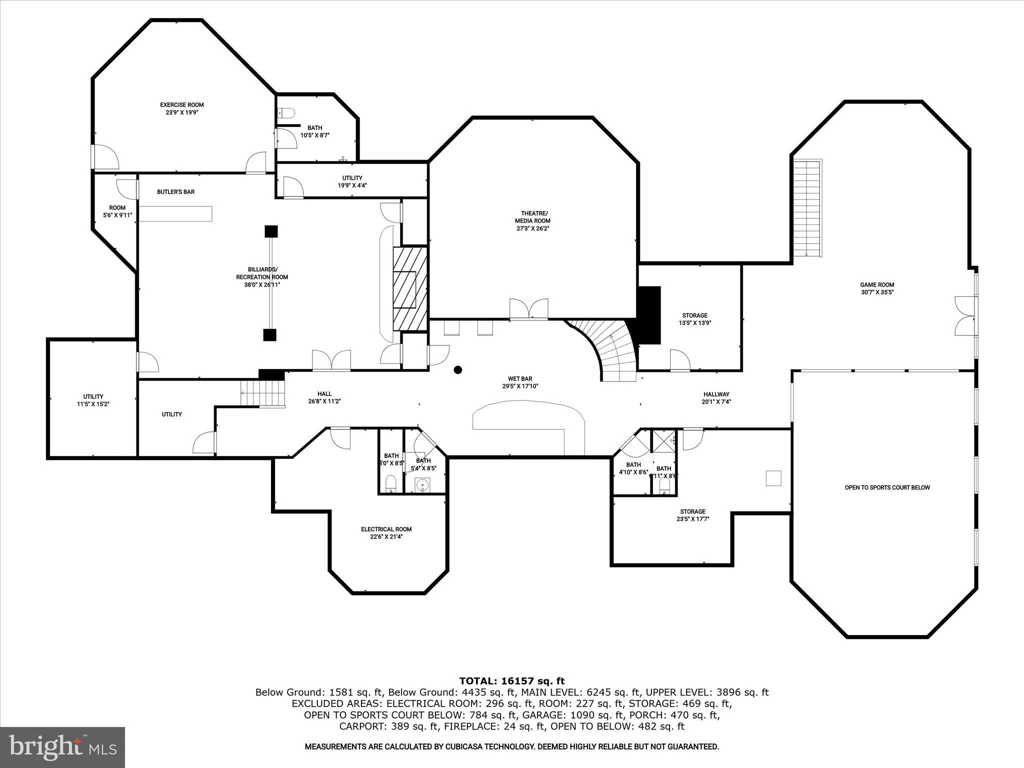 A stately gated entrance and private drive announce arrival to this majestic estate home sited on a hill presiding over 12 rolling acres. A circular drive is centered on the covered front porch and architectural gantry balcony above. The stone porch and commanding wood entry doors are articulated with leaded glass, sidelights, and an elegant eyebrow transom. Inside, a two-story marble foyer is sided by wall niches, curved staircases to upper and lower floors, and a grand hall on each side. Above, a dramatic dome and feature chandelier on a lift add to draw your eye upward with experiential splendor. The grand side halls flanking the foyer open to the banquet-sized Formal Dining Room on one side, and a formal study richly appointed with a brick fireplace on the other. Architectural columns define the foyer as it unfolds through a sweeping central arch into the storied formal living room. A stone arch surrounds a gas fireplace on center axis with three sets of French doors that border the octagonal-shaped living room, each opening to a wrap-around rear porch. The octagonal shape is repeated above in the mezzanine overlook with French doors that open to a rear balcony and sweeping arched windows. Repeated architectural arches, strong multi-piece crown moldings, tall base moldings, and multi-tray ceilings, along with fine finishes, combine to become the design language throughout this luxury estate home. A secondary back stair to upper sleeping quarters is discreetly located adjacent to one of four entry points to the gourmet kitchen and breakfast room, which are the heart of the home. Perfect for gatherings large and small, the floor plan offers traffic flow options and easy passage from room to room, along with speakers in every room for festive occasions. The large gourmet kitchen offers stainless appliances including a professionally sized Viking fridge and freezer, Viking gas range, hood, two dishwashers, walk-in pantry, center island, secondary prep sink, and a peninsula breakfast bar that transitions to an octagonal breakfast room. Architectural brick arches open to the Family room with a cozy brick fireplace and abundant space for large, informal gatherings where guests can meander outside through French doors. Friends and family can enter and exit through a less formal, secondary entry and covered porch, or through the laundry/mudroom side access and covered porch option. Thoughtful design in this floor plan offers versatility and flexibility for change, and lifestyle options. Main level living can be paramount, and this floor plan boasts a dedicated primary suite wing with two fireplaces, sitting area, private balcony, luxury jetted bath, separate vanities, dressing table, and steam shower. The main level is concluded with another secondary en-suite bedroom with a corner built-in and private bath, adjacent to the Primary Suite wing. Upstairs, there are four more en-suite bedrooms, a second laundry with hook-ups, a library with built-in bookcases, and a sixth ensuite bedroom option that is nearly finished. Endless entertainment options abound on two lower levels. Lower level One has a central wrap-around wet bar flanked by two bathrooms and two stair entry options. A fully finished recreation and billiards room share a brick fireplace and butler's service bar. The adjacent exercise room has a partially finished full bath and walk-in closet for expanded flexibility. Opposite the wet bar, a pair of French doors open into an elaborately finished Theater room, outfitted with risers, eight recliners, iPad control projector, screen, surround sound speakers, and sound barrier. Options galore include a light-filled walk-out game area with observation windows open to the sport court and B-Ball hoop below. This is truly an extraordinary home with extraordinary architecture, extraordinary finishes, and extraordinary amenities. Come home to EXTRAORDINARY!