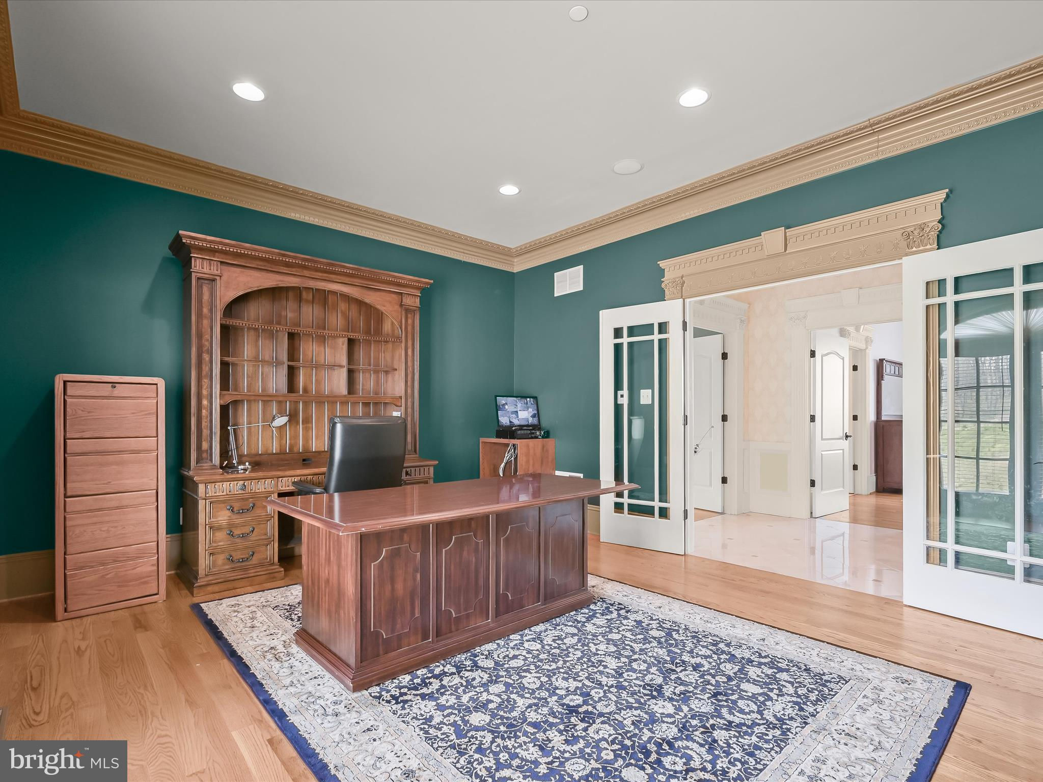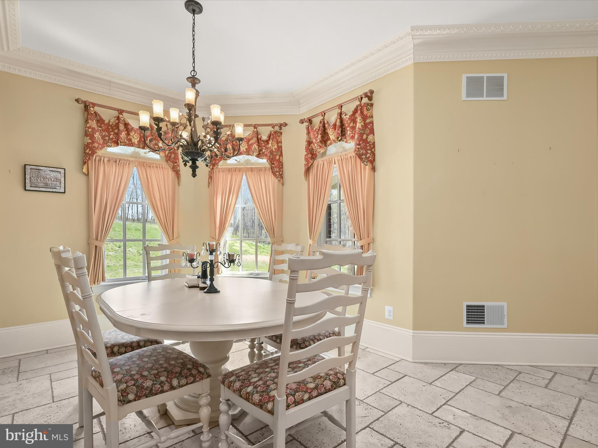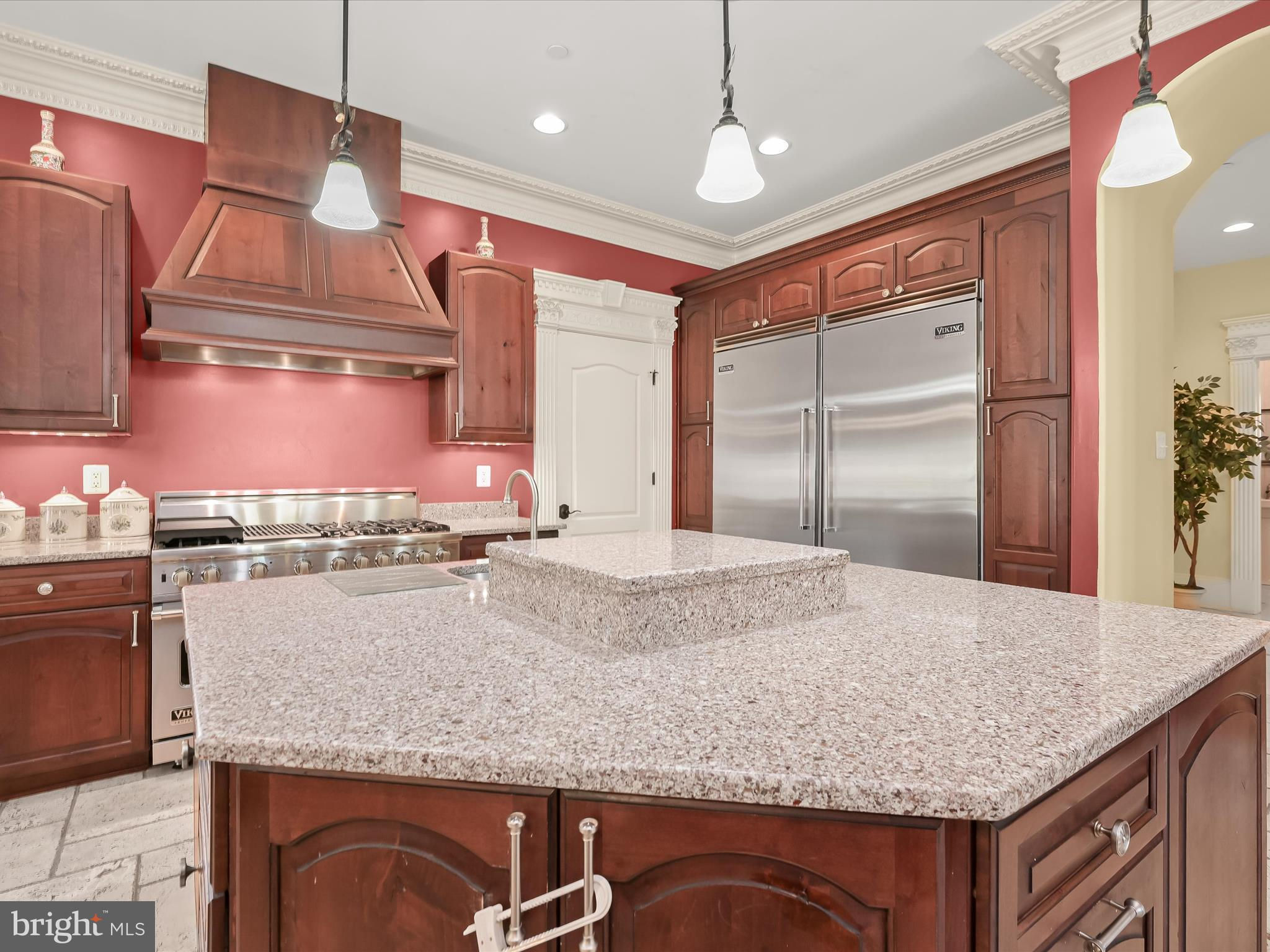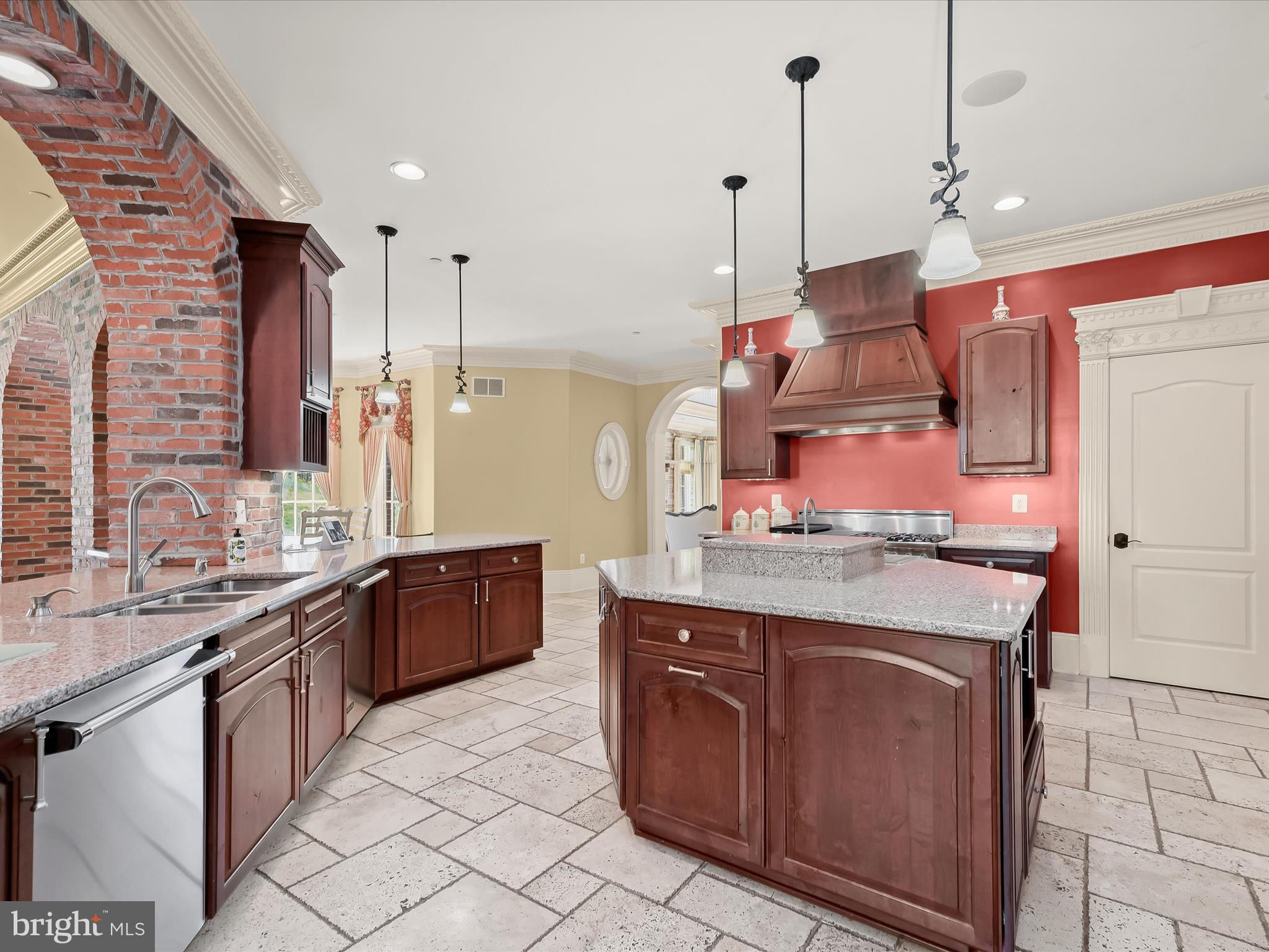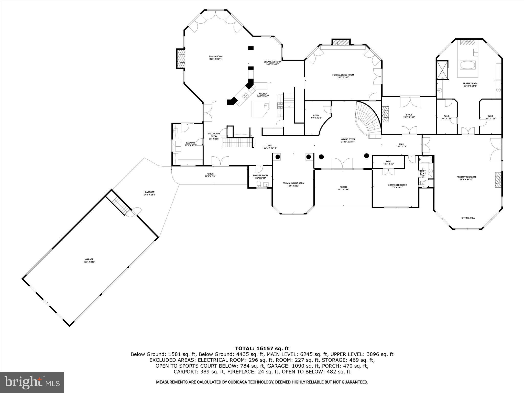 A stately gated entrance and private drive announce arrival to this majestic estate home sited on a hill presiding over 12 rolling acres. A circular drive is centered on the covered front porch and architectural gantry balcony above. The stone porch and commanding wood entry doors are articulated with leaded glass, sidelights, and an elegant eyebrow transom. Inside, a two-story marble foyer is sided by wall niches, curved staircases to upper and lower floors, and a grand hall on each side. Above, a dramatic dome and feature chandelier on a lift add to draw your eye upward with experiential splendor. The grand side halls flanking the foyer open to the banquet-sized Formal Dining Room on one side, and a formal study richly appointed with a brick fireplace on the other. Architectural columns define the foyer as it unfolds through a sweeping central arch into the storied formal living room. A stone arch surrounds a gas fireplace on center axis with three sets of French doors that border the octagonal-shaped living room, each opening to a wrap-around rear porch. The octagonal shape is repeated above in the mezzanine overlook with French doors that open to a rear balcony and sweeping arched windows. Repeated architectural arches, strong multi-piece crown moldings, tall base moldings, and multi-tray ceilings, along with fine finishes, combine to become the design language throughout this luxury estate home. A secondary back stair to upper sleeping quarters is discreetly located adjacent to one of four entry points to the gourmet kitchen and breakfast room, which are the heart of the home. Perfect for gatherings large and small, the floor plan offers traffic flow options and easy passage from room to room, along with speakers in every room for festive occasions. The large gourmet kitchen offers stainless appliances including a professionally sized Viking fridge and freezer, Viking gas range, hood, two dishwashers, walk-in pantry, center island, secondary prep sink, and a peninsula breakfast bar that transitions to an octagonal breakfast room. Architectural brick arches open to the Family room with a cozy brick fireplace and abundant space for large, informal gatherings where guests can meander outside through French doors. Friends and family can enter and exit through a less formal, secondary entry and covered porch, or through the laundry/mudroom side access and covered porch option. Thoughtful design in this floor plan offers versatility and flexibility for change, and lifestyle options. Main level living can be paramount, and this floor plan boasts a dedicated primary suite wing with two fireplaces, sitting area, private balcony, luxury jetted bath, separate vanities, dressing table, and steam shower. The main level is concluded with another secondary en-suite bedroom with a corner built-in and private bath, adjacent to the Primary Suite wing. Upstairs, there are four more en-suite bedrooms, a second laundry with hook-ups, a library with built-in bookcases, and a sixth ensuite bedroom option that is nearly finished. Endless entertainment options abound on two lower levels. Lower level One has a central wrap-around wet bar flanked by two bathrooms and two stair entry options. A fully finished recreation and billiards room share a brick fireplace and butler's service bar. The adjacent exercise room has a partially finished full bath and walk-in closet for expanded flexibility. Opposite the wet bar, a pair of French doors open into an elaborately finished Theater room, outfitted with risers, eight recliners, iPad control projector, screen, surround sound speakers, and sound barrier. Options galore include a light-filled walk-out game area with observation windows open to the sport court and B-Ball hoop below. This is truly an extraordinary home with extraordinary architecture, extraordinary finishes, and extraordinary amenities. Come home to EXTRAORDINARY!