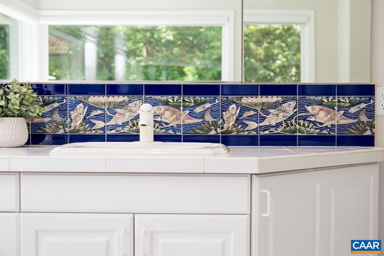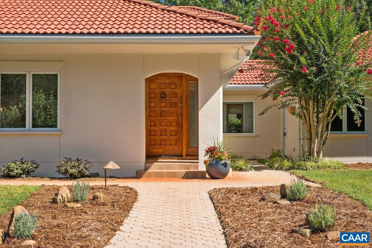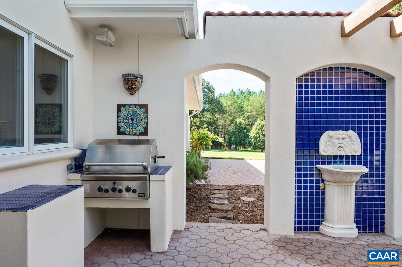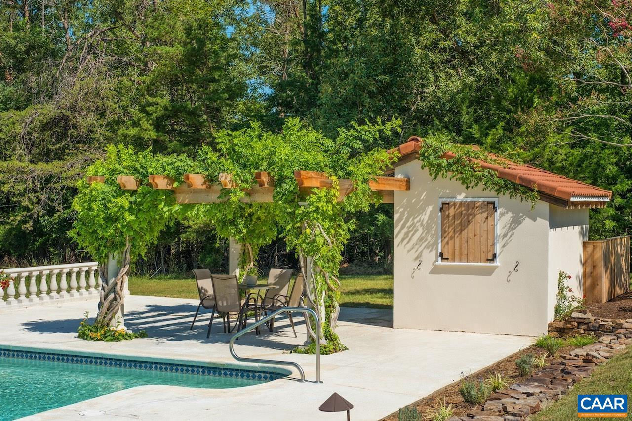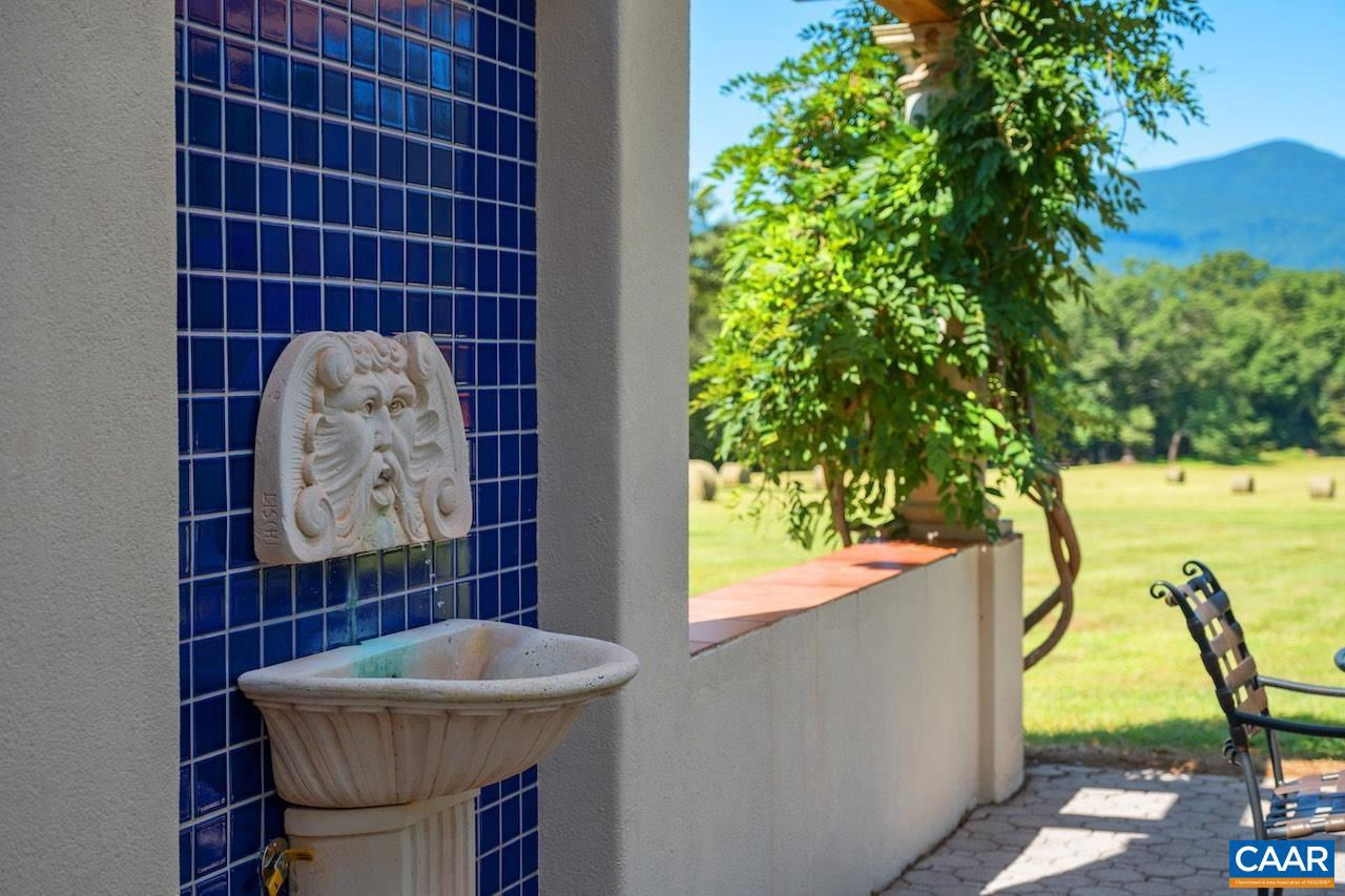 Open House Sept 14 1-4pm. Mediterranean inspired and designed with amazing mountain views and privacy! The approach to the home is magnificent, but the views upon arrival will take your breath away. Be mesmerized by the sweeping pastoral and mountain views from inside with large windows to frame the view and from outdoors - arbor covered courtyard with water feature, patio, deck, or pool and small pool house with mini kitchen. Comprised of nearly 100 acres with an estimated 30+ acres of pasture and balance in woods and creeks for hiking or exploring AND includes 2 extra parcels if family wants to build nearby. The architectural design and Smith and Robertson custom construction brought the owner's vision to life with custom details in porches, arches, lighting, and handcrafted tiles. Features: vaulted ceilings, sky lights, hardwood floors, wood trim and doors, wood stove insert, fiber optic internet, spacious rooms and many extra living spaces such as home office, den, upstairs guest suite or apartment with mini kitchen, and a basement offering space for recreation, exercise, guests, or storage. Coveted Afton location only 1.5 miles to Rt 151 and the wine and brew trail, 10 min to Nellysford town hub, and 30 min to Charlottesville,Tile Counter,White Cabinets,Fireplace in Living Room